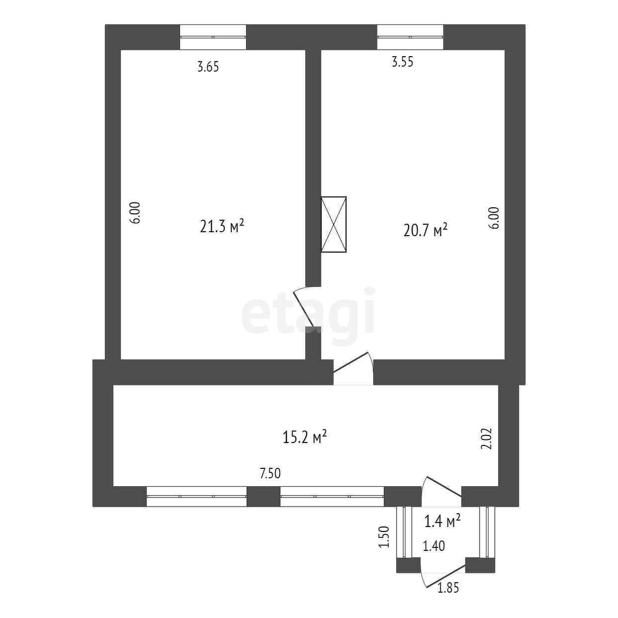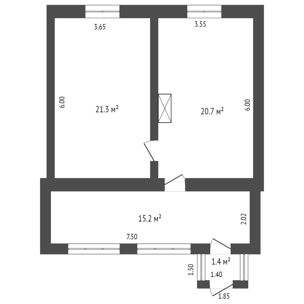 Общая площадь 34 м2