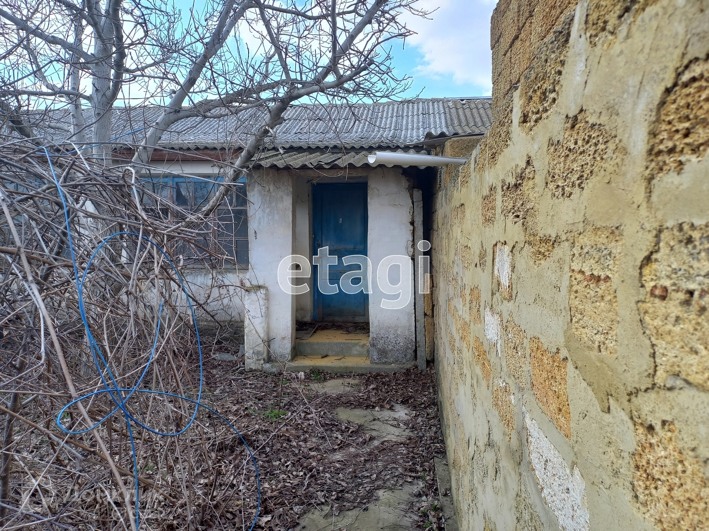 У часток с домом огорожен камнем ракушечник.