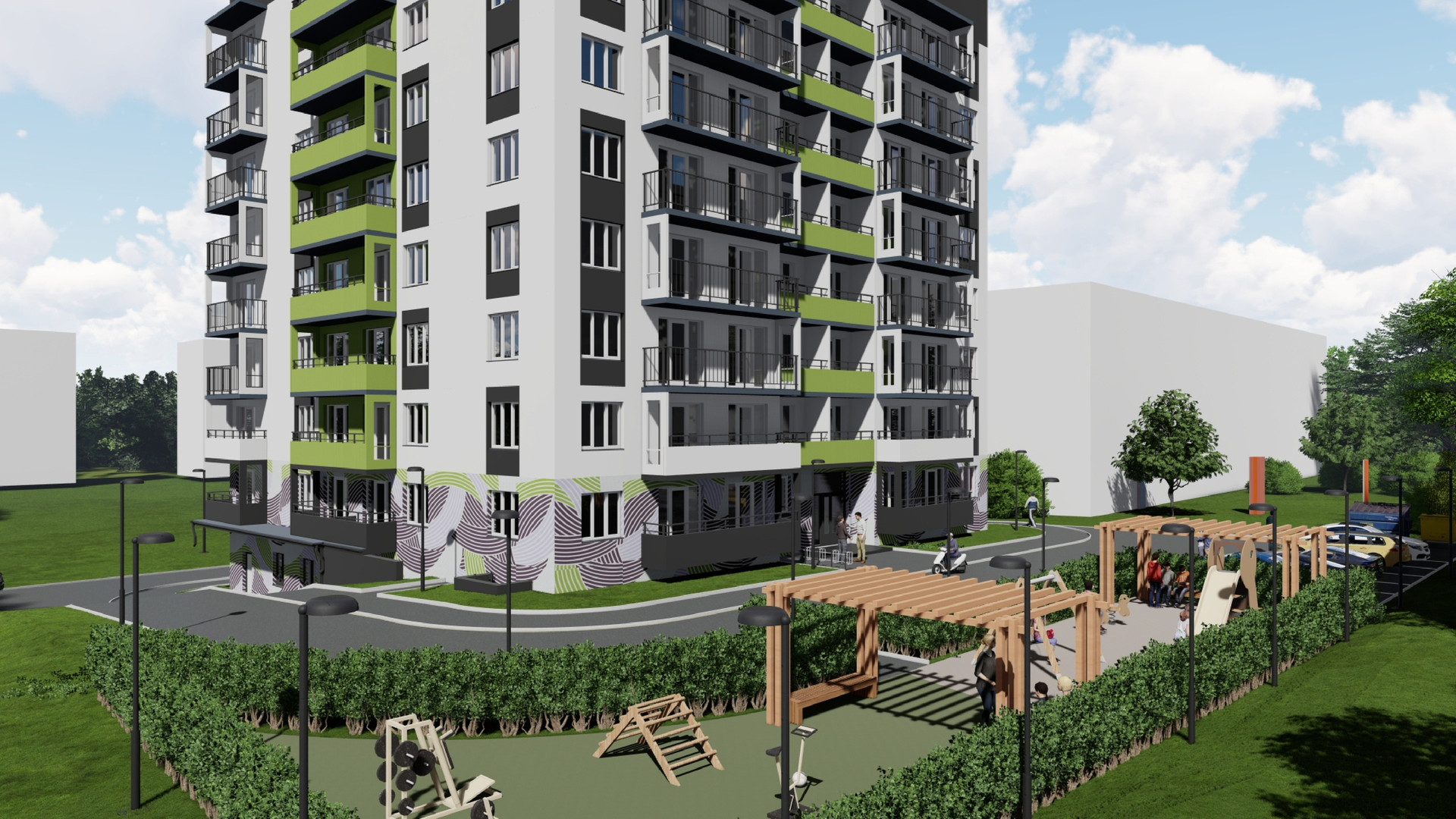 • Территория облагорожена ландшафтным дизайном, создавая приятную атмосферу. Тут есть место как отдыху, так и активным играм!