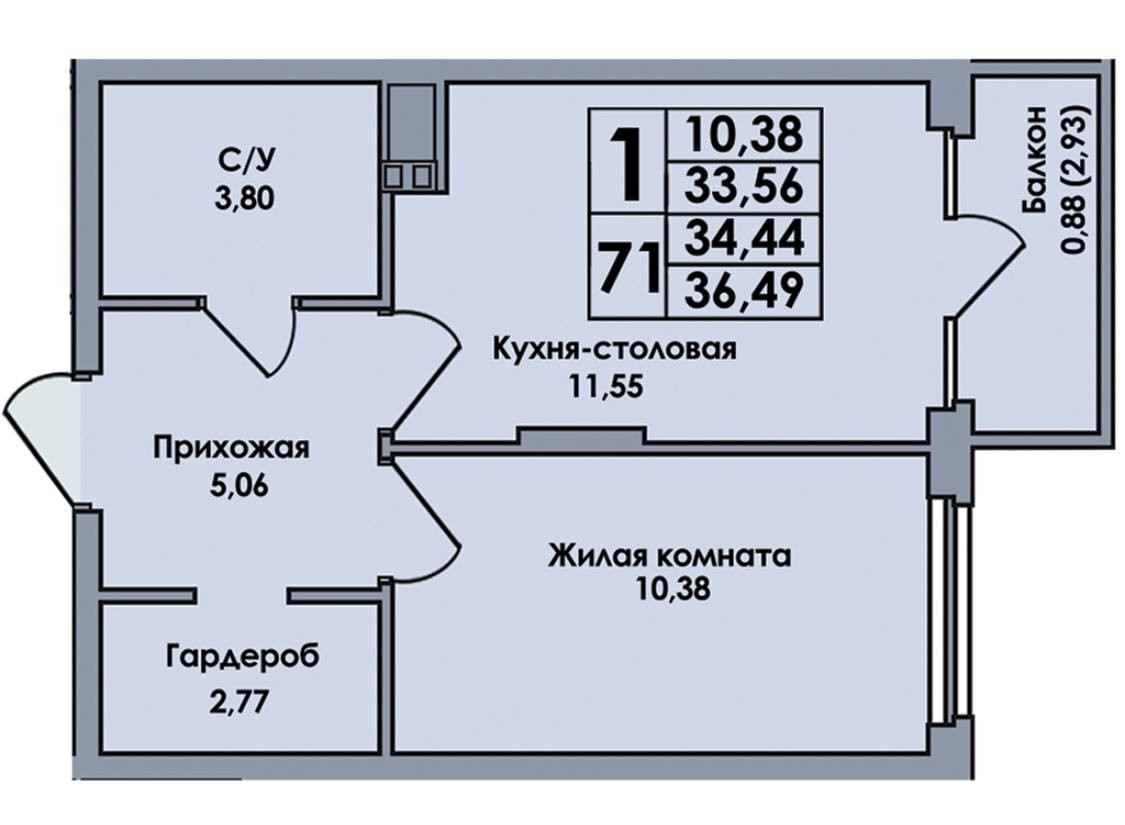 Общая площадь 36.49 м2