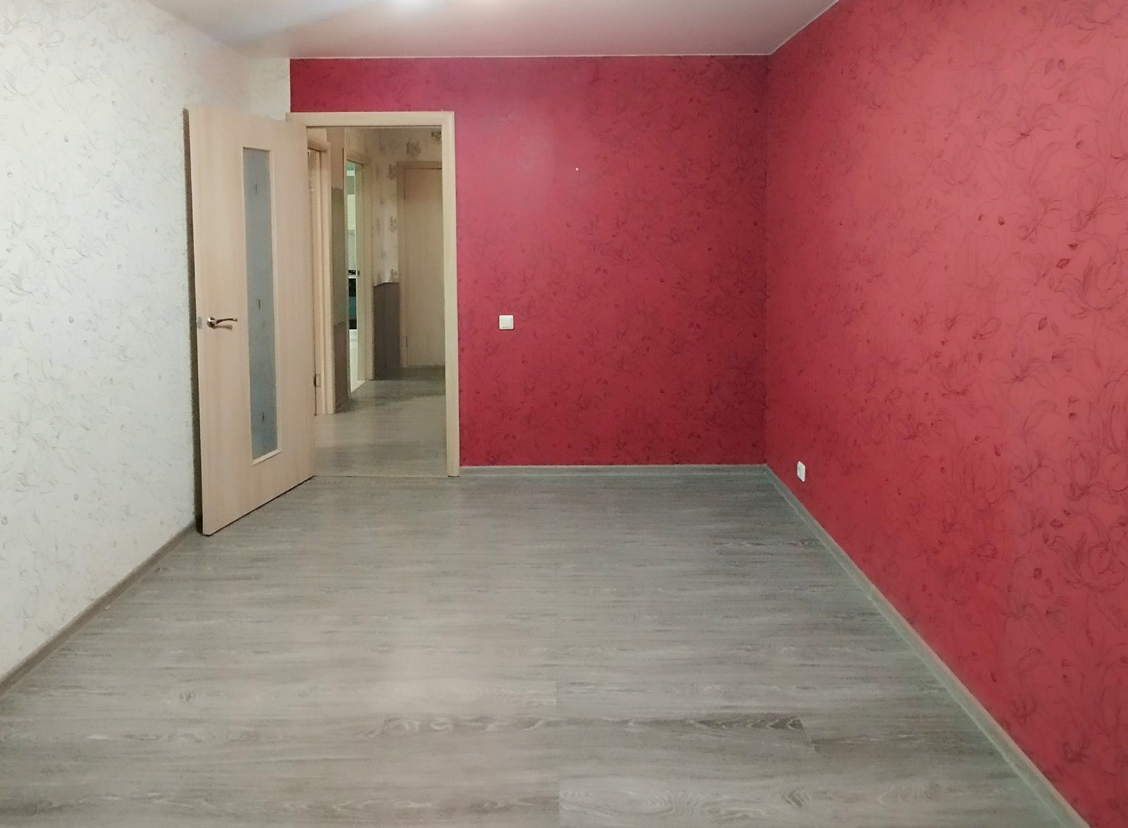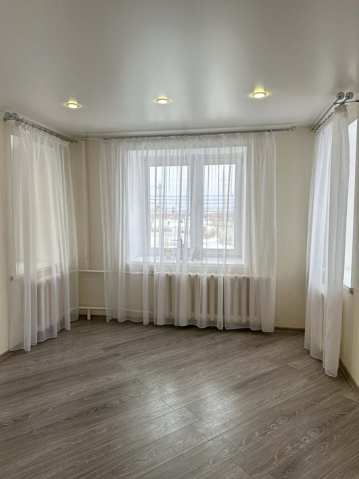 Пол – плитка, ламинат; потолок – натяжной; на стенах – свежие обои; новые межкомнатные двери. Санузел полностью оборудован качественной сантехникой и обложен кафельной плиткой.