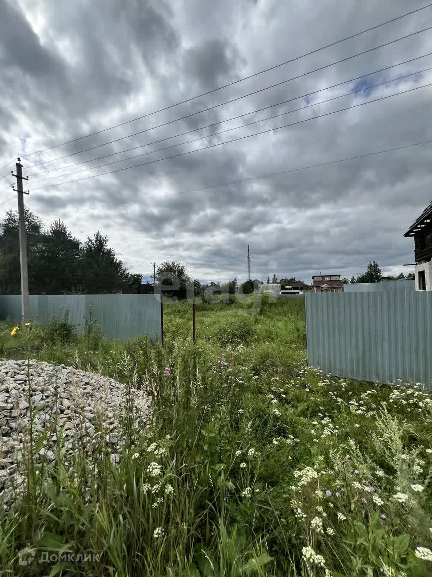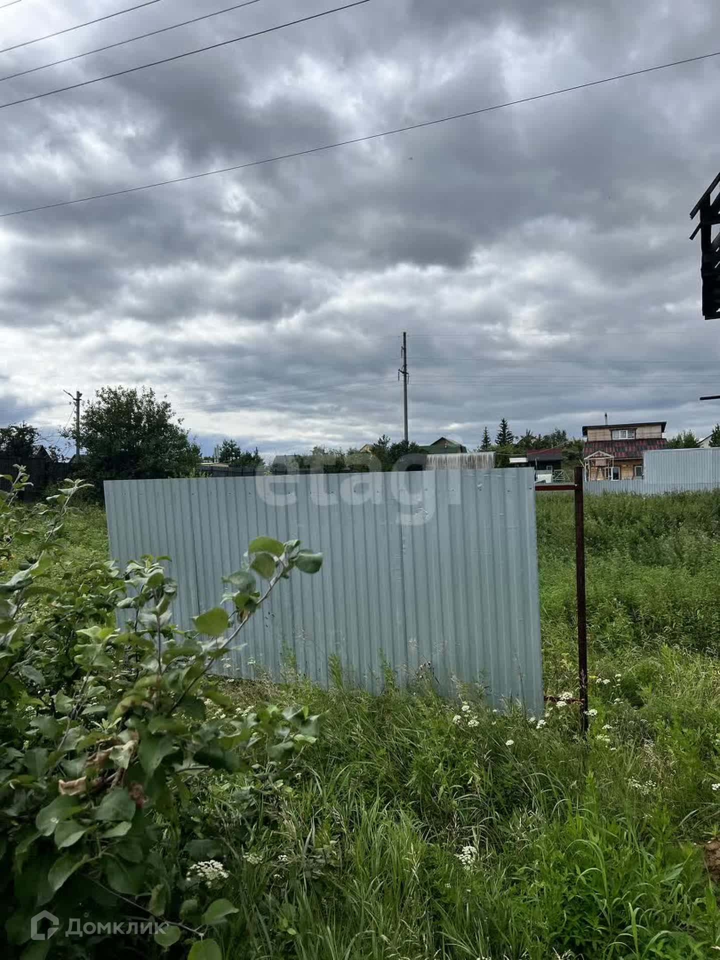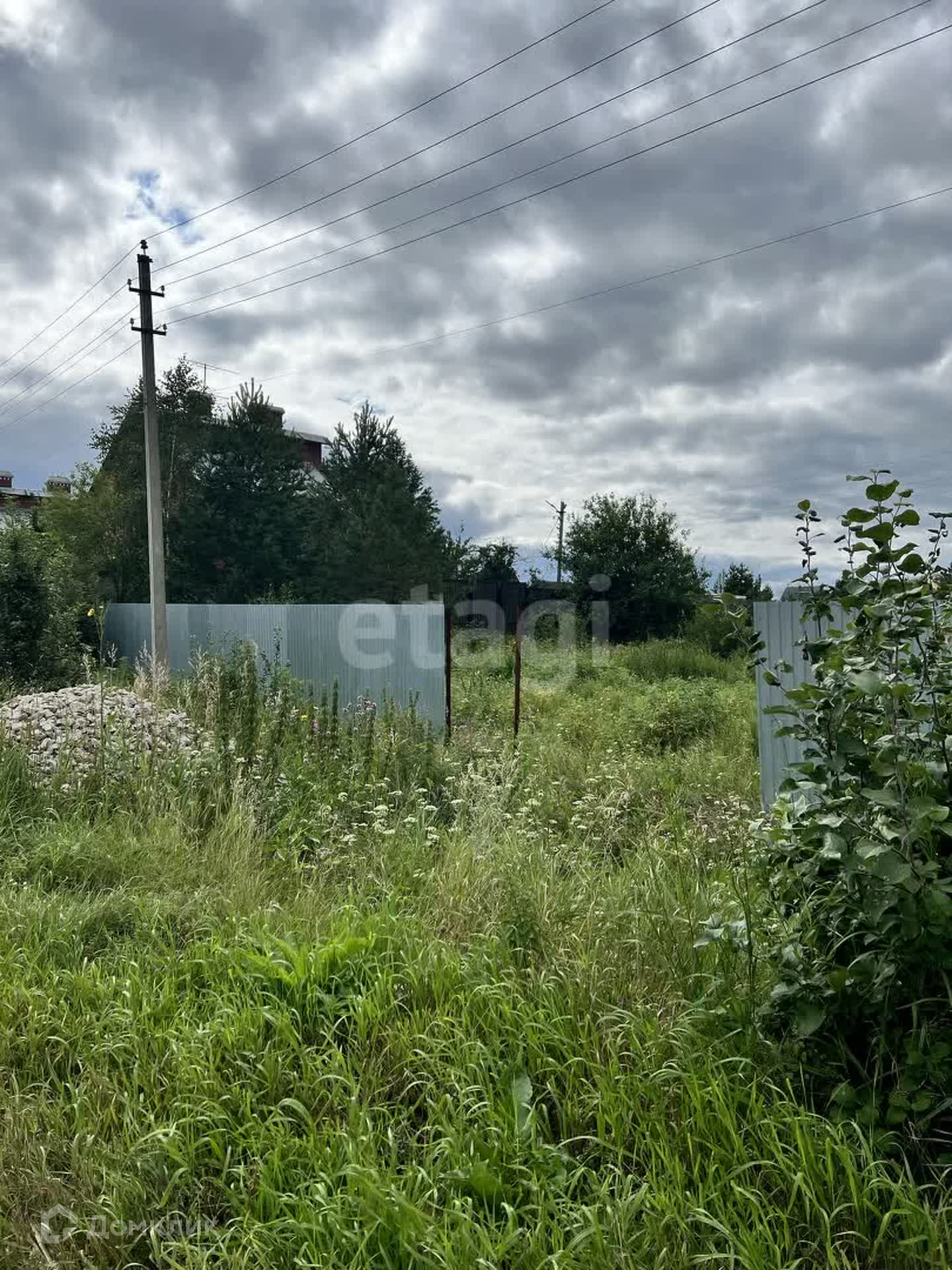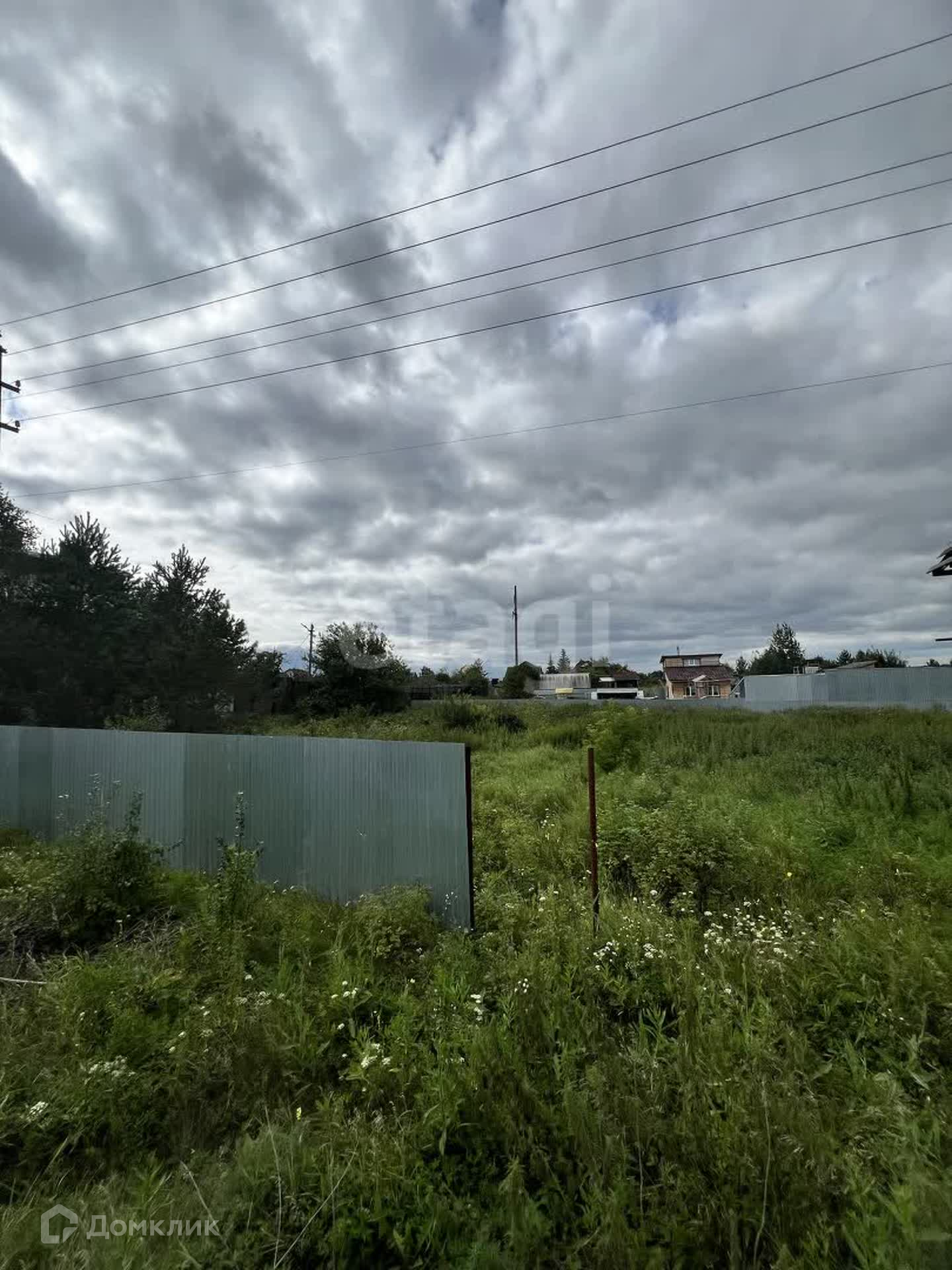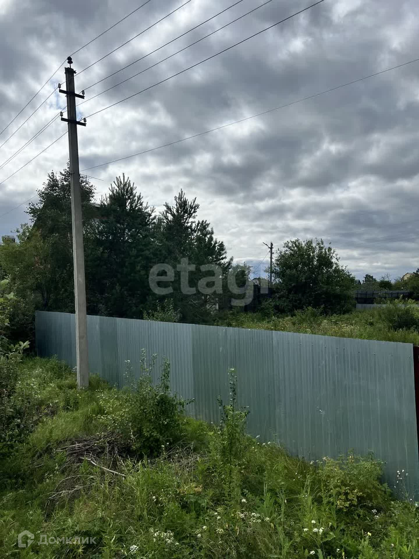 Установлен частично забор, возле участка есть столб с электричеством.