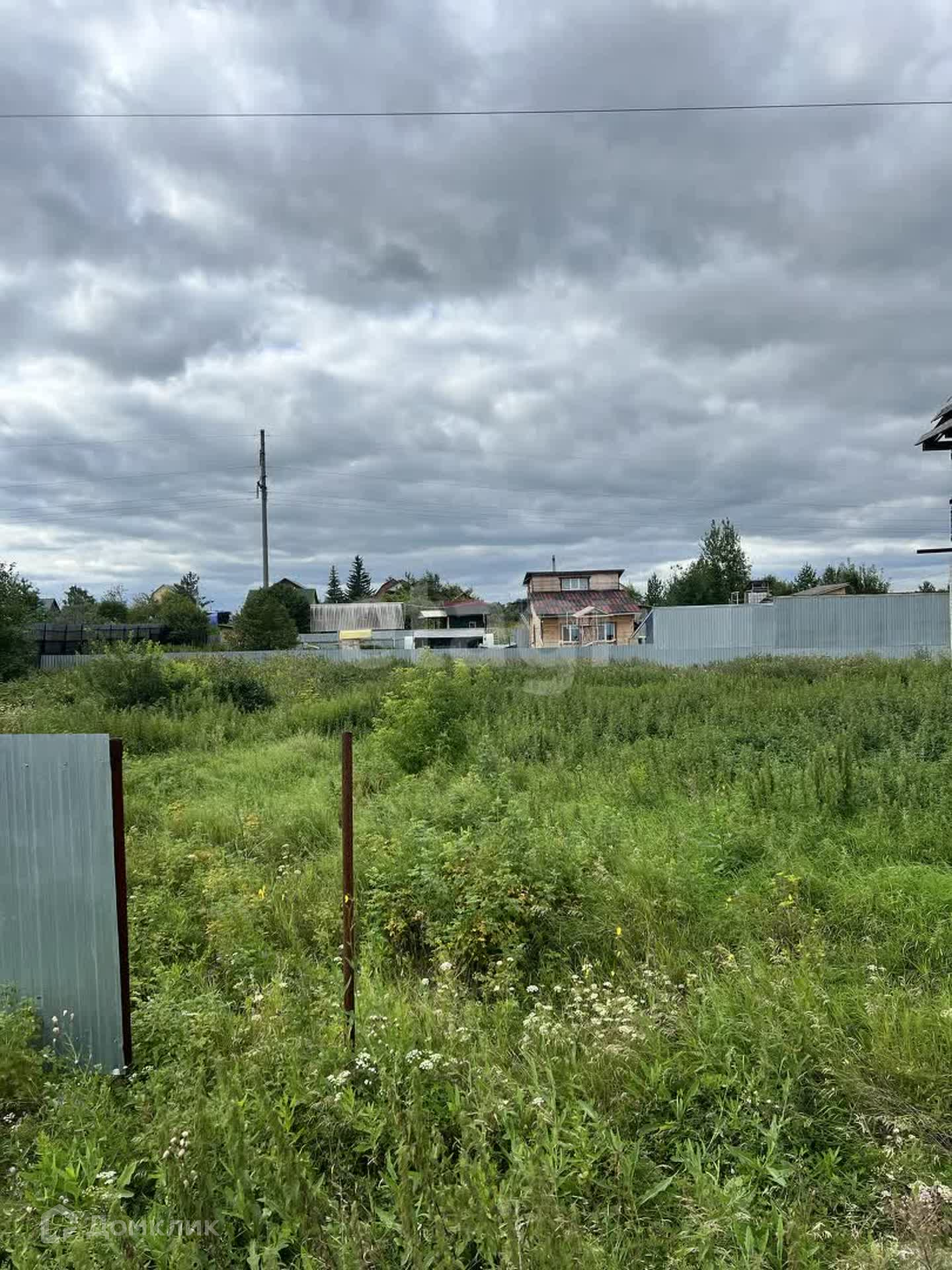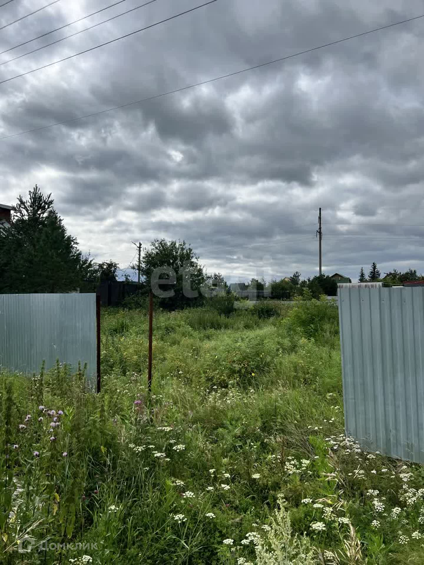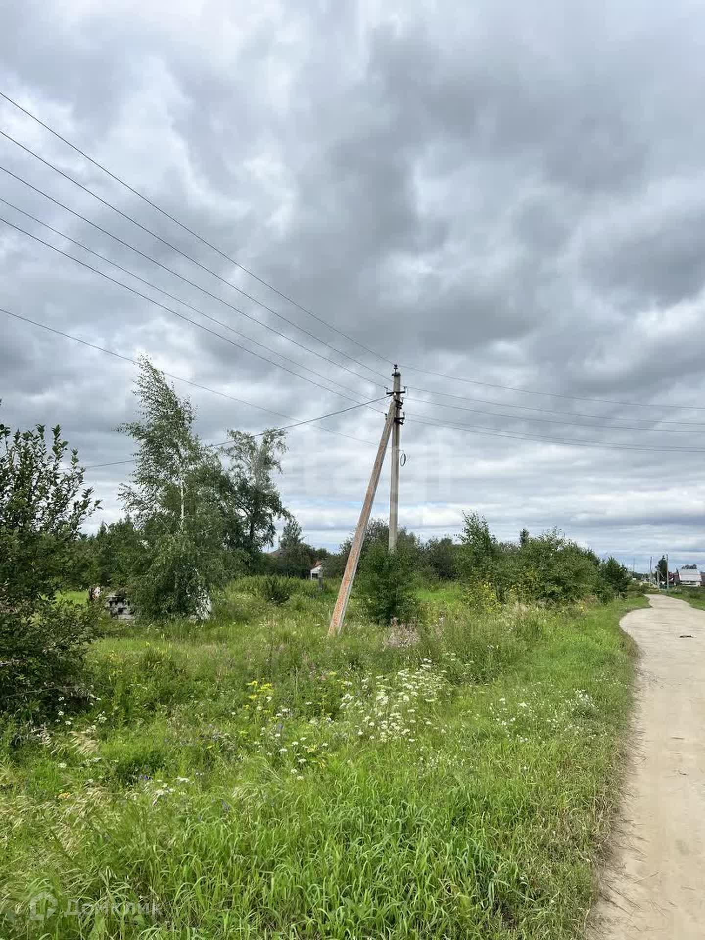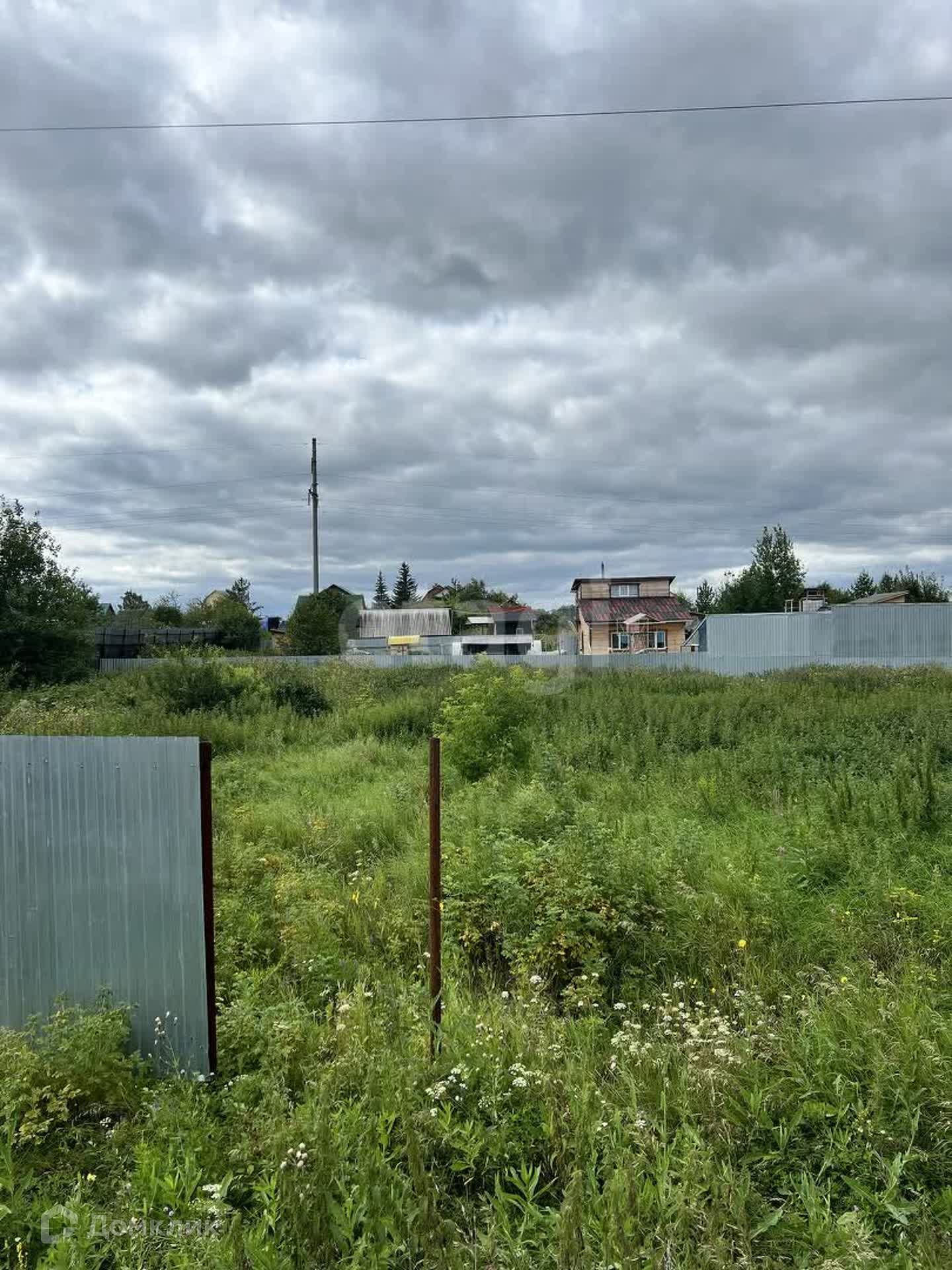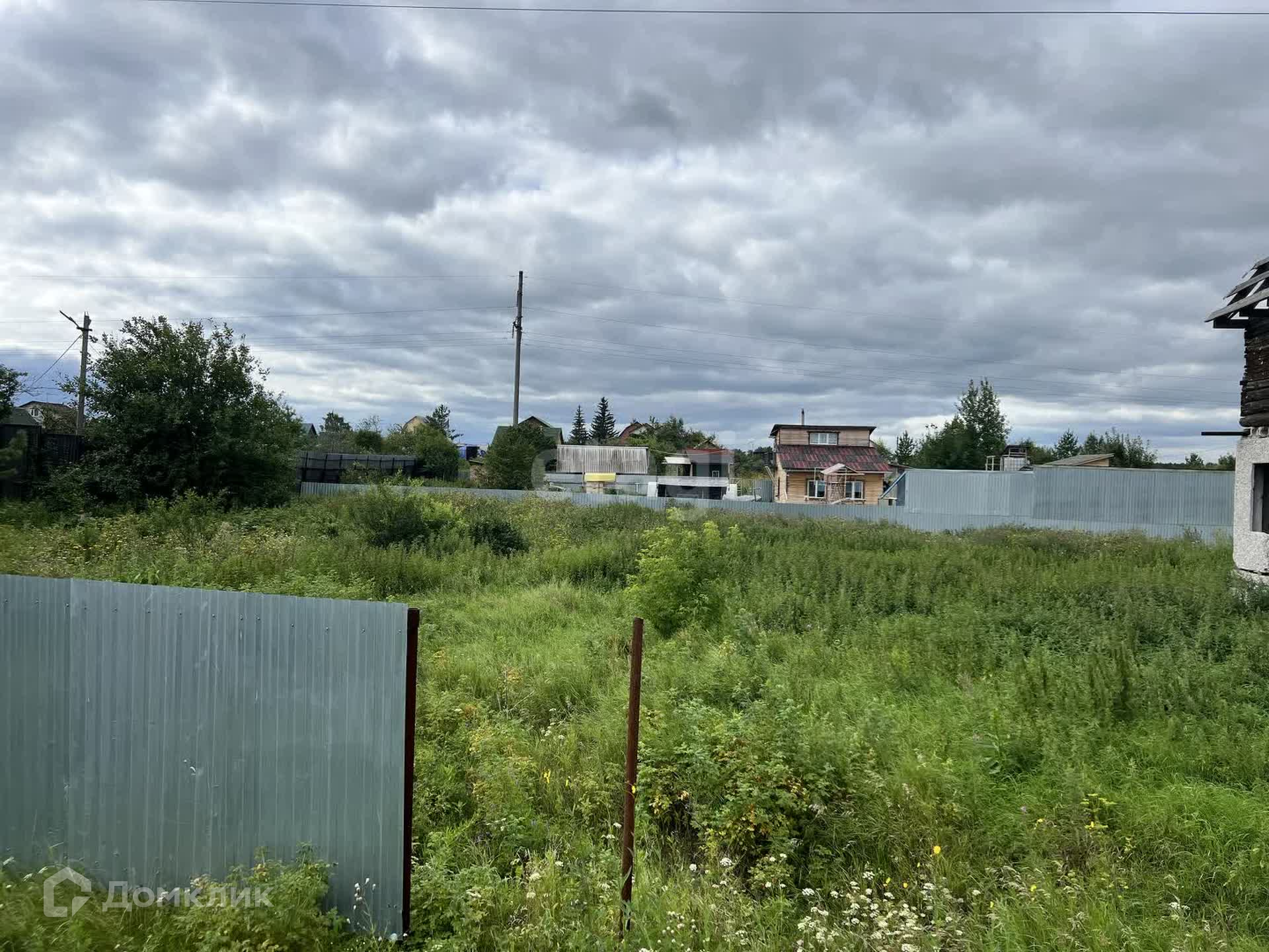 Установлен частично забор, возле участка есть столб с электричеством.