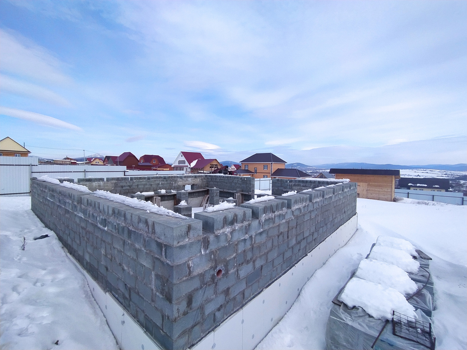 Коммуникации: свет на участке, вода заведена в строящийся объект. Степень готовности объекта незавершенного строительства  10%. Материалы использовались качественные. Участок полностью огорожен, забор металлический, частично на фундаменте. Отличное место, тихая и уютная загородная атмосфера с шикарным видом на окрестности и горы. На территории  имеется еще одно строение, выполненное из хороших материалов. Инфраструктура рядом, до  школы и ближайшей остановки транспорта  10 минут ходьбы, транспортная доступность хорошая. Добраться до центра города на машине можно за 20 минут.  Цена 1 600 000 рублей. Осмотр по согласованию