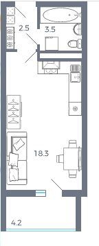 Общая площадь 24.3 м2