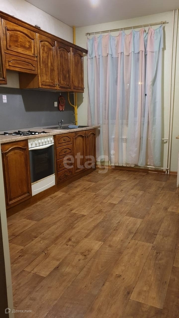 - просторная кухня .Уложен ламинат. Полностью остается кухонный гарнитур, варочная панель.