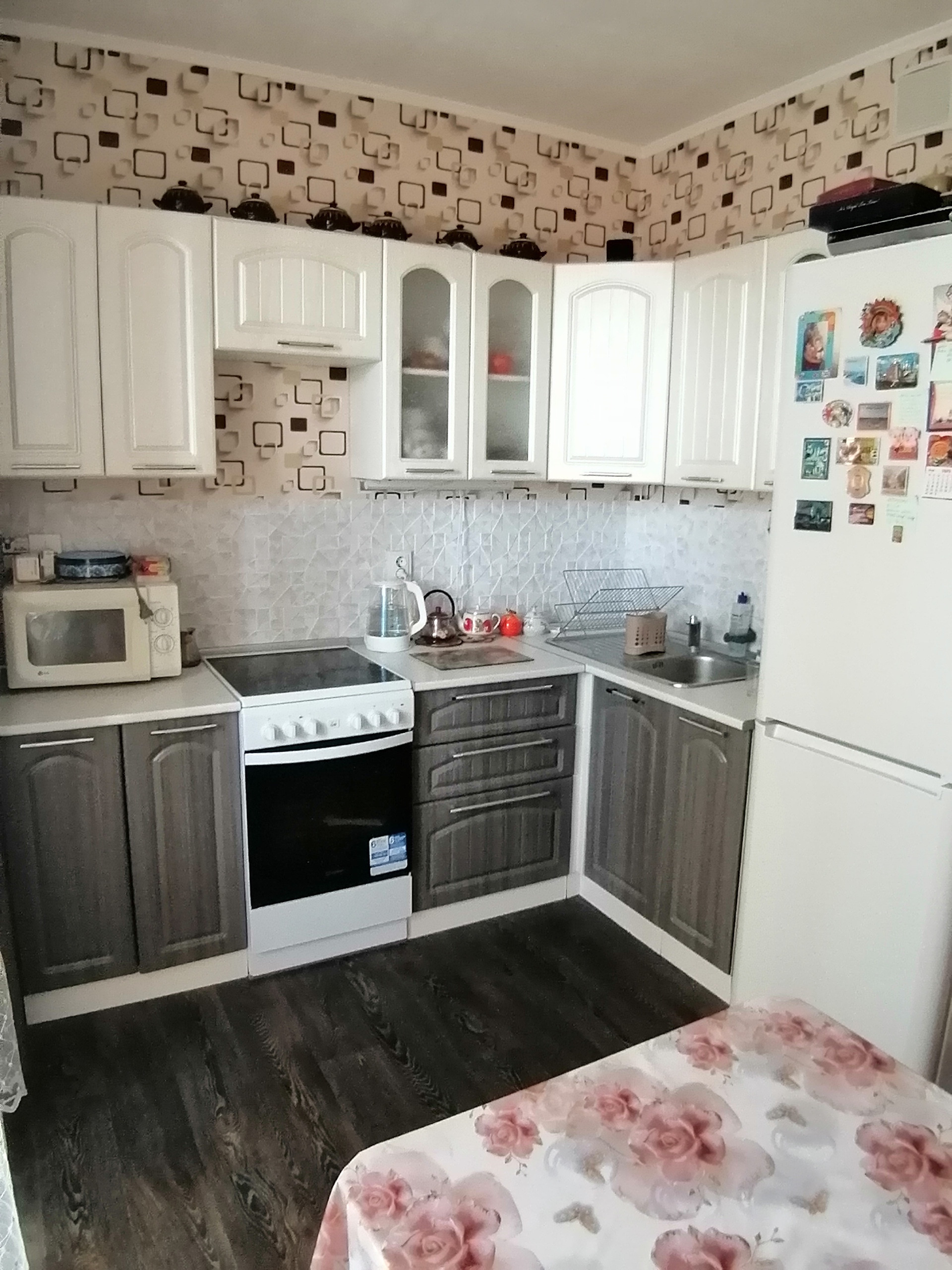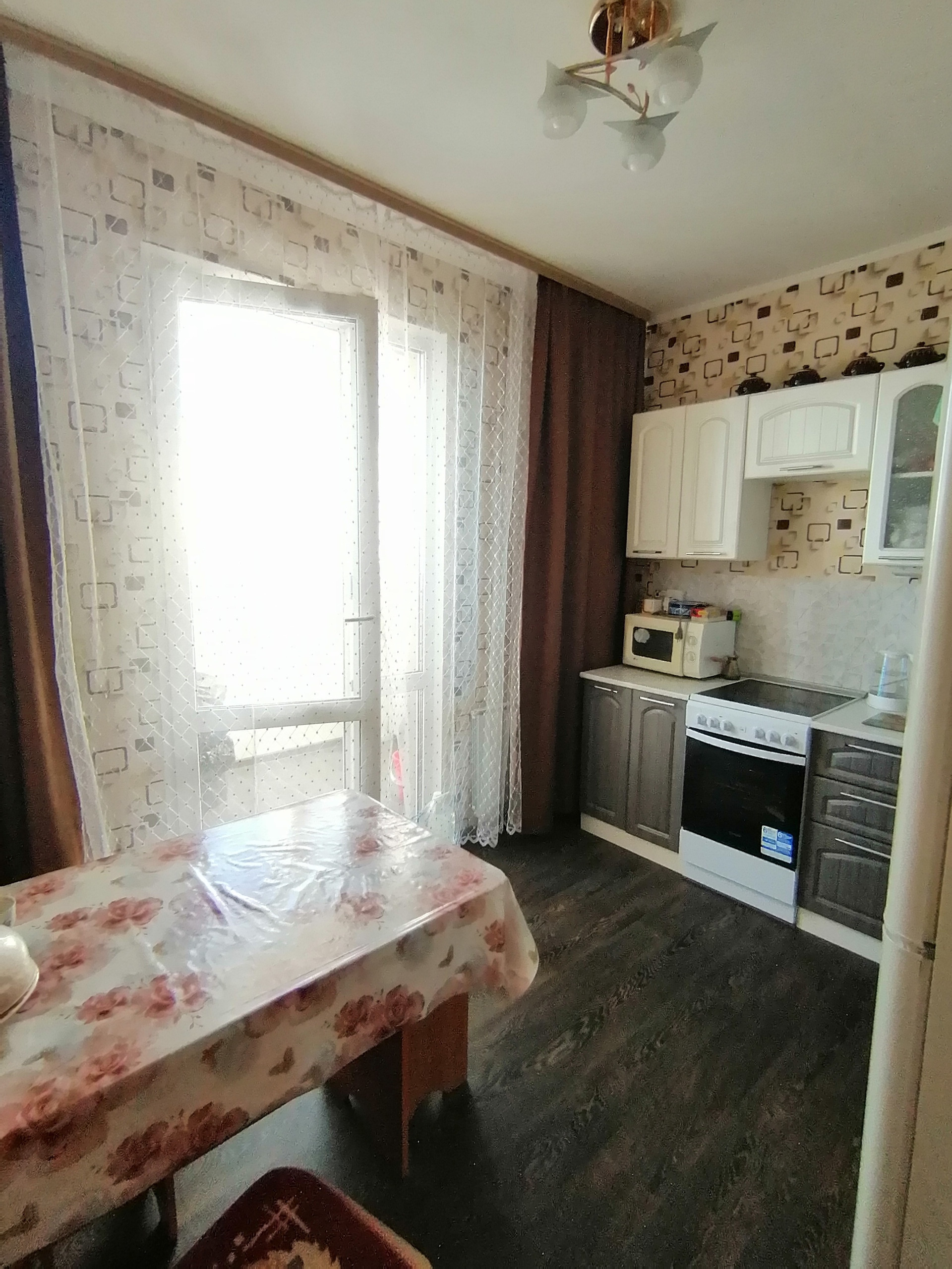 Кухня просторная. Большая лоджия. Возможно объединить кухню и лоджию. Лоджия застеклена.