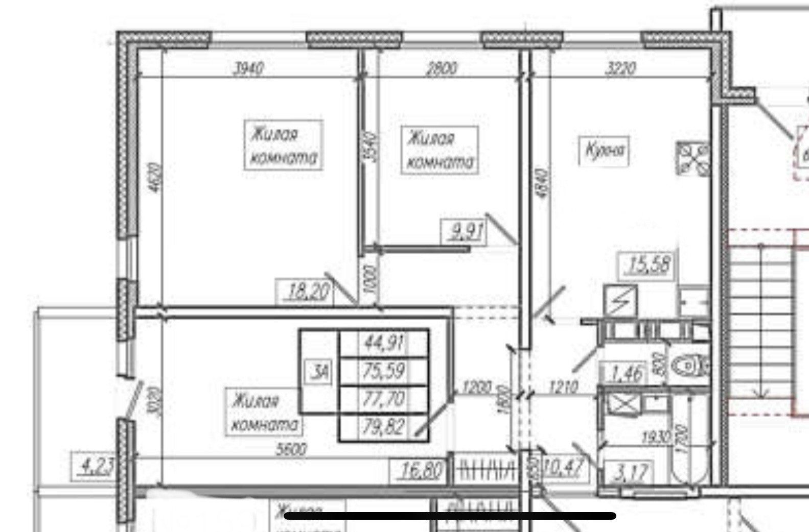 Общая площадь 77.7 м2