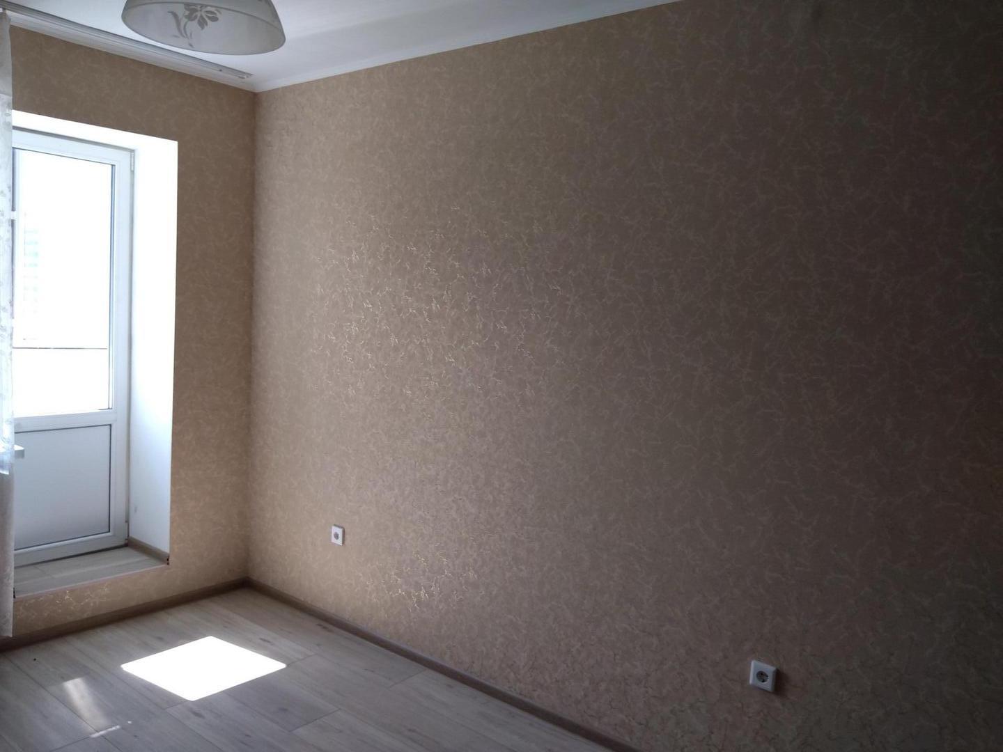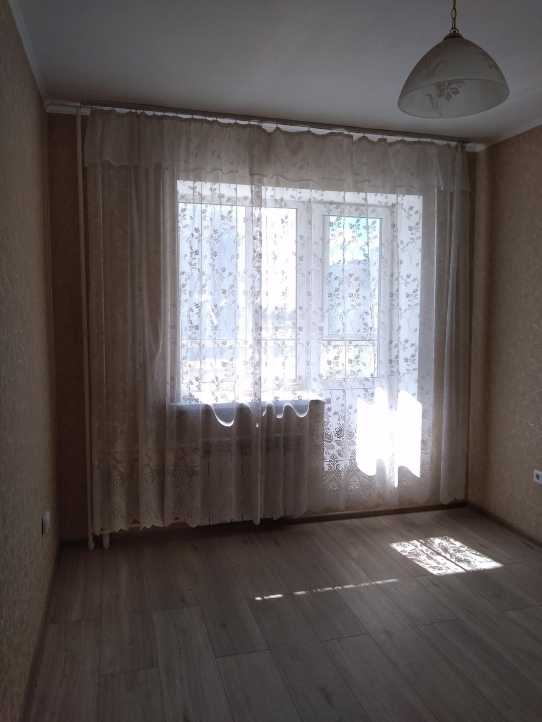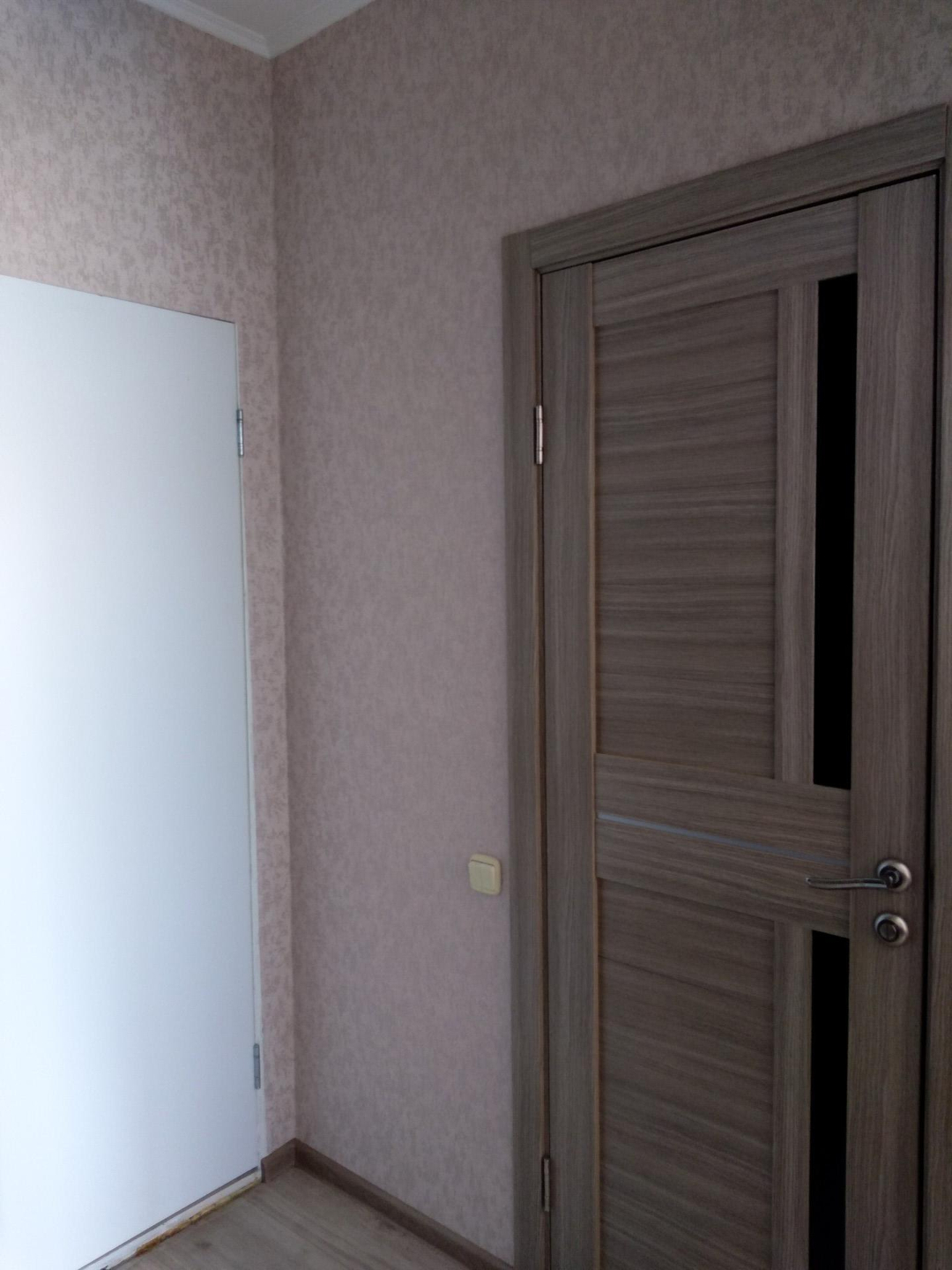 свежий ремонт в комнате и на кухне. санузел- предчистовая отделка. стены - обои, потолки белые окрашены, полы ламинат, входная дверь металл., балкон застеклен стеклянными витражами вид на Николаевский проспект, около школы и садика. Никто не проживает и не прописан.