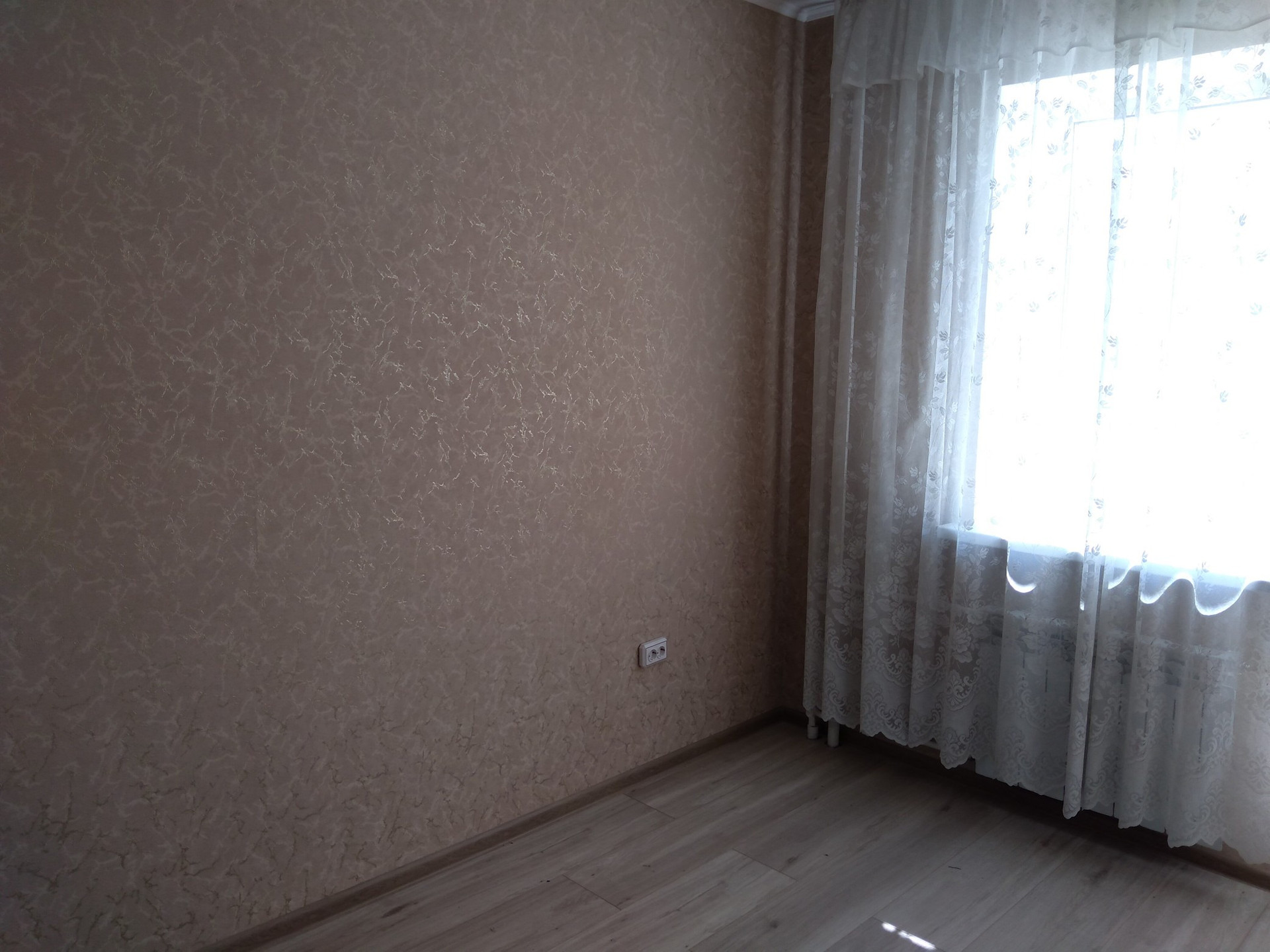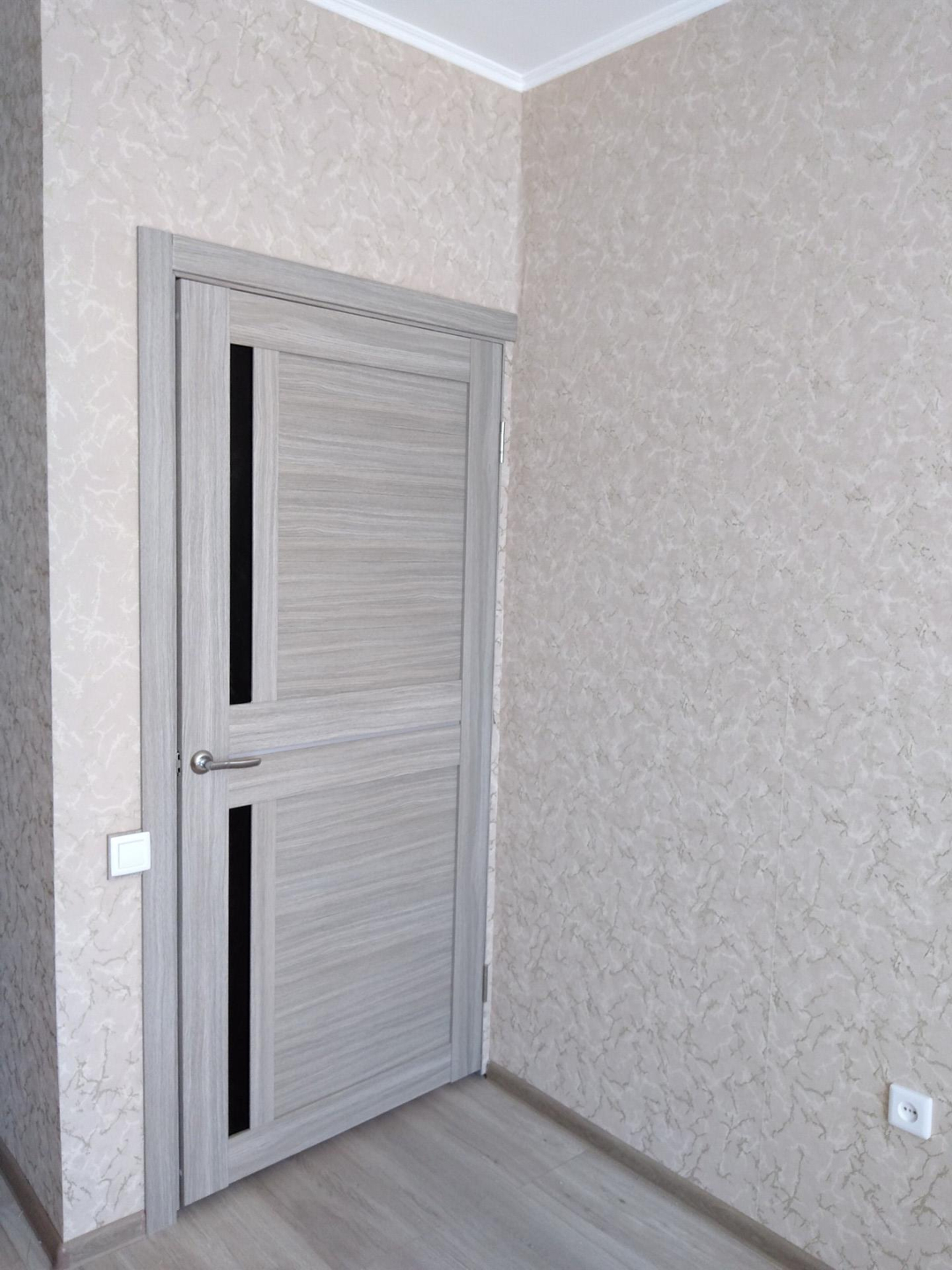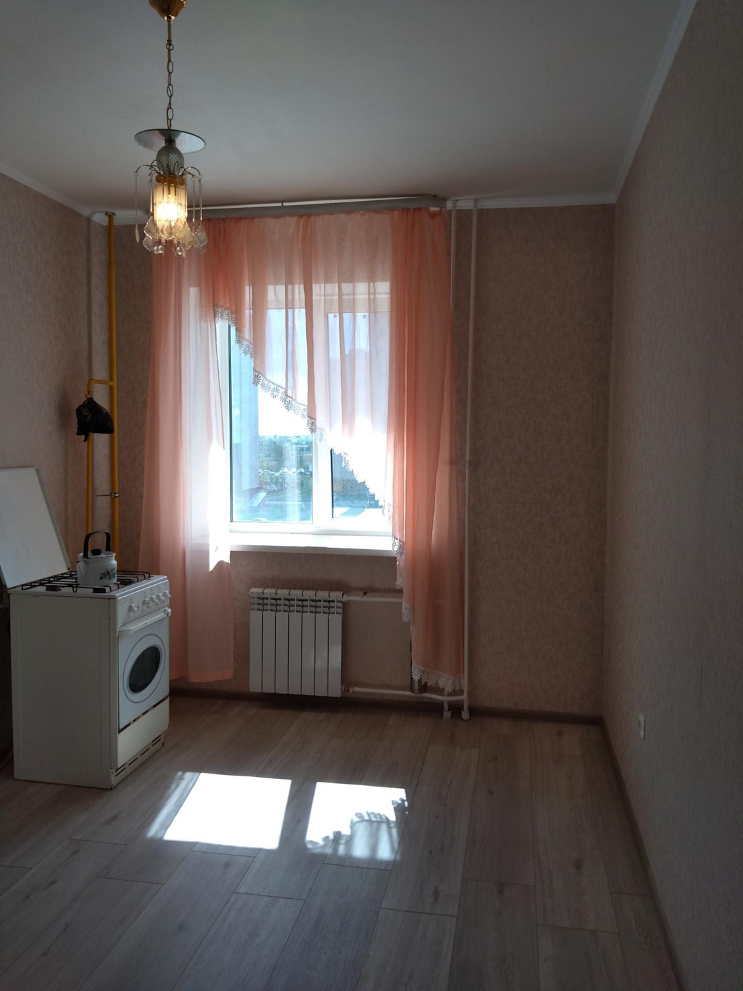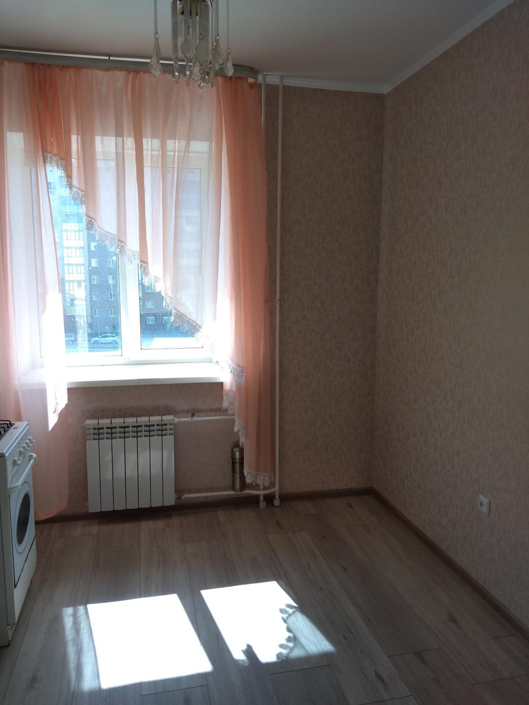 свежий ремонт в комнате и на кухне. санузел- предчистовая отделка. стены - обои, потолки белые окрашены, полы ламинат, входная дверь металл., балкон застеклен стеклянными витражами вид на Николаевский проспект, около школы и садика. Никто не проживает и не прописан.