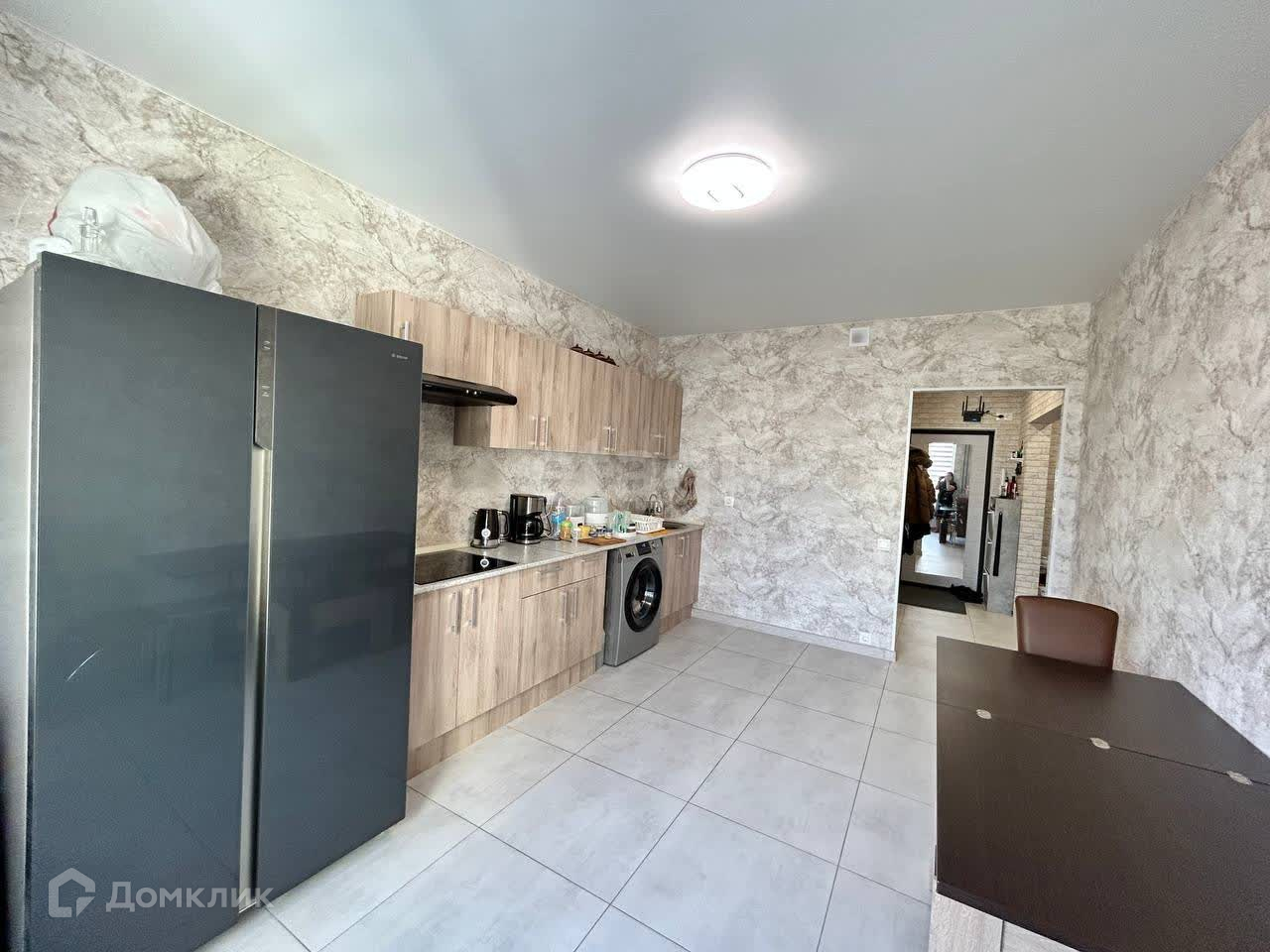 На кухне площадью 15 кв м вы сможете разделить рабочую и обеденные зоны. Функциональный гарнитур позволяет разместить всё необходимое для приготовления вкусных и полезных блюд. Так же на кухне установлена система фильтрации, индукционная плита и стиральная машина на 6 кг фирмы hair, двухдверный холодильник 620 литров фирмы dexp.