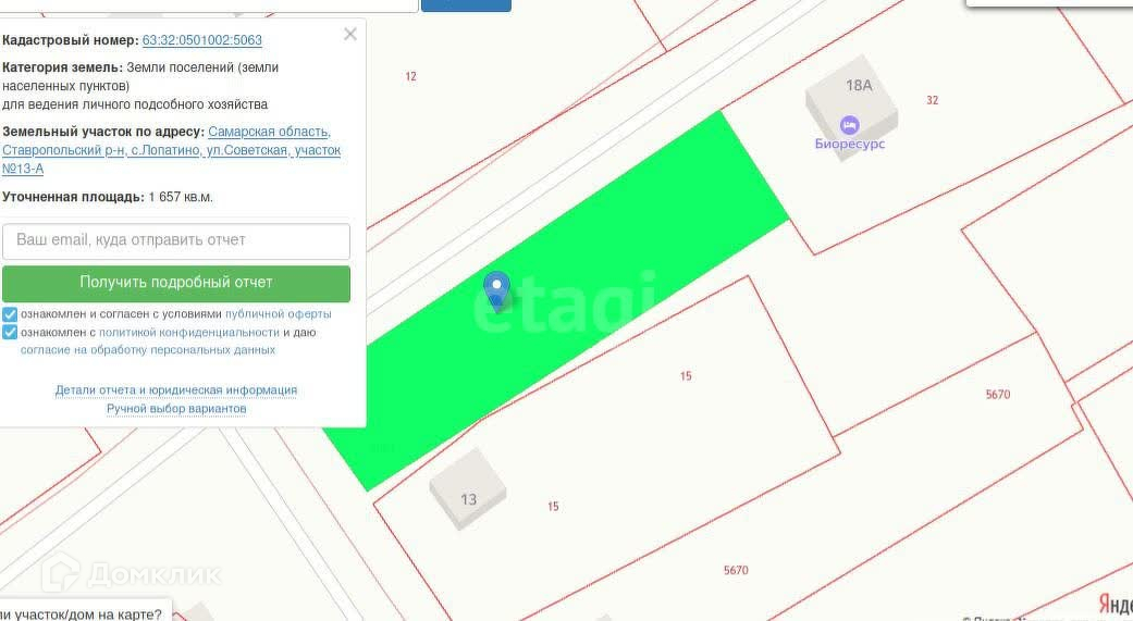 Участок под ИЖС, 16.6 сот. на продажу в селе Лопатино