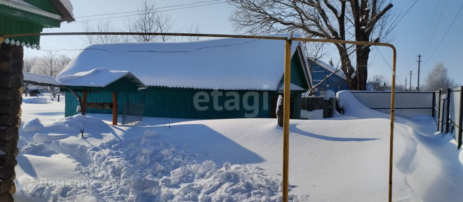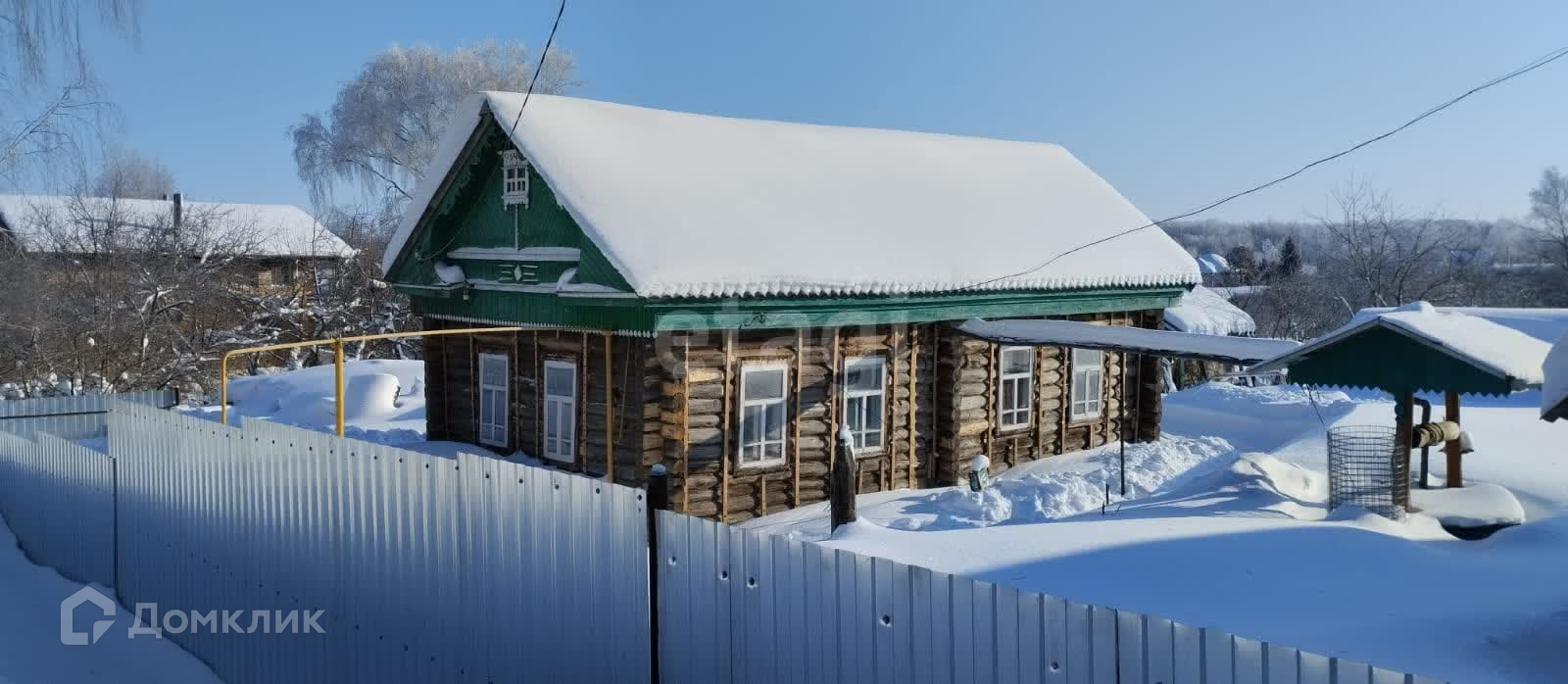 На участке бревенчатый дом на восстановление, теплица, колодец.