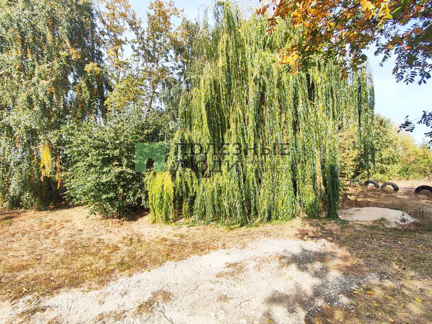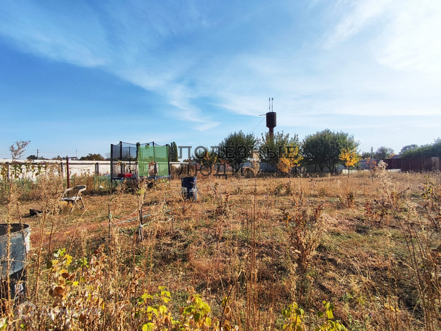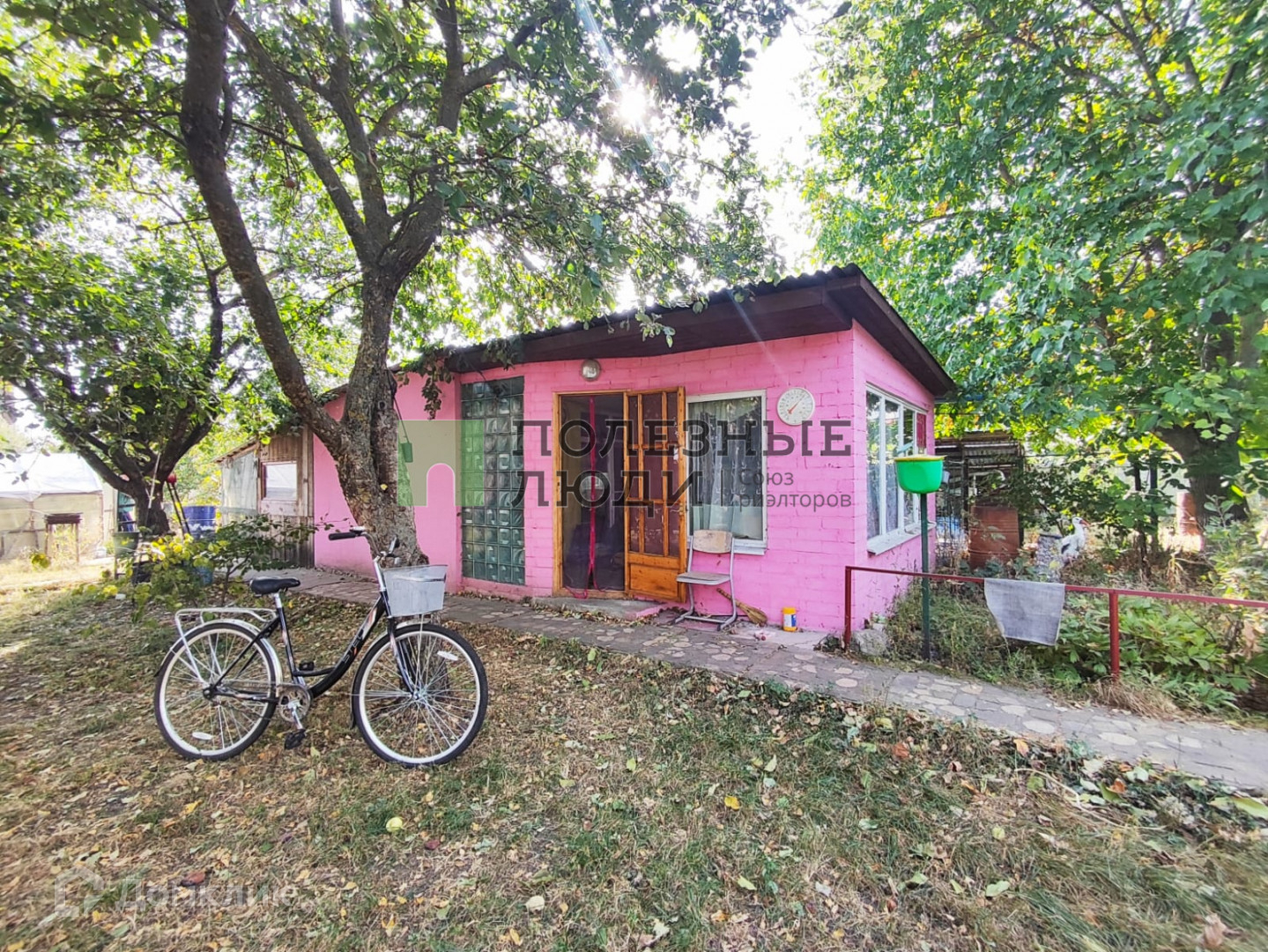 На территории есть летний домик, состоящий из 2х комнат, с печкой-буржуйкой; баня; беседка; теплица; сарай для хранения садового инвентаря и холодным погребом; навес под автомобиль (есть ворота, через которые можно заехать на участок).