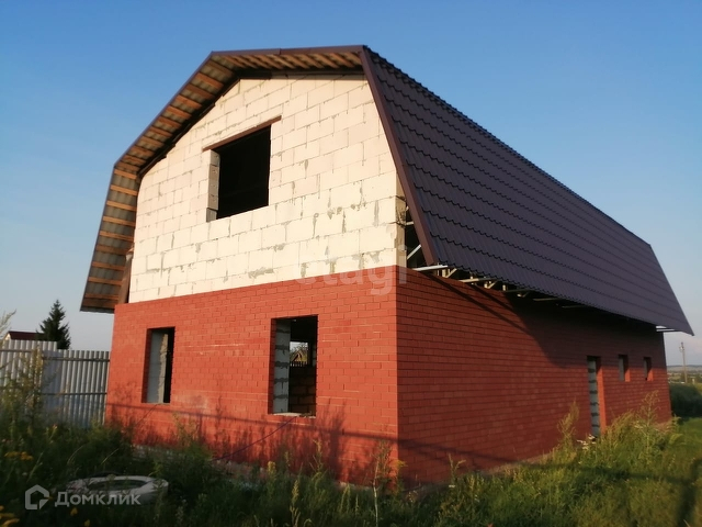 2. Двухэтажный дом-баня общей площадью 98 кв.м (из которых 40 кв.м. - это мансарда). Материал стен - газобетон 255 мм, минеральная вата вата 100 мм, обложен так же облицовочным кирпичом. Планировалась деревянная крыша, материал закуплен весной 2022 года. Проложена магистраль для двухконтурного отопления. Год подстроки 2021 -2022.