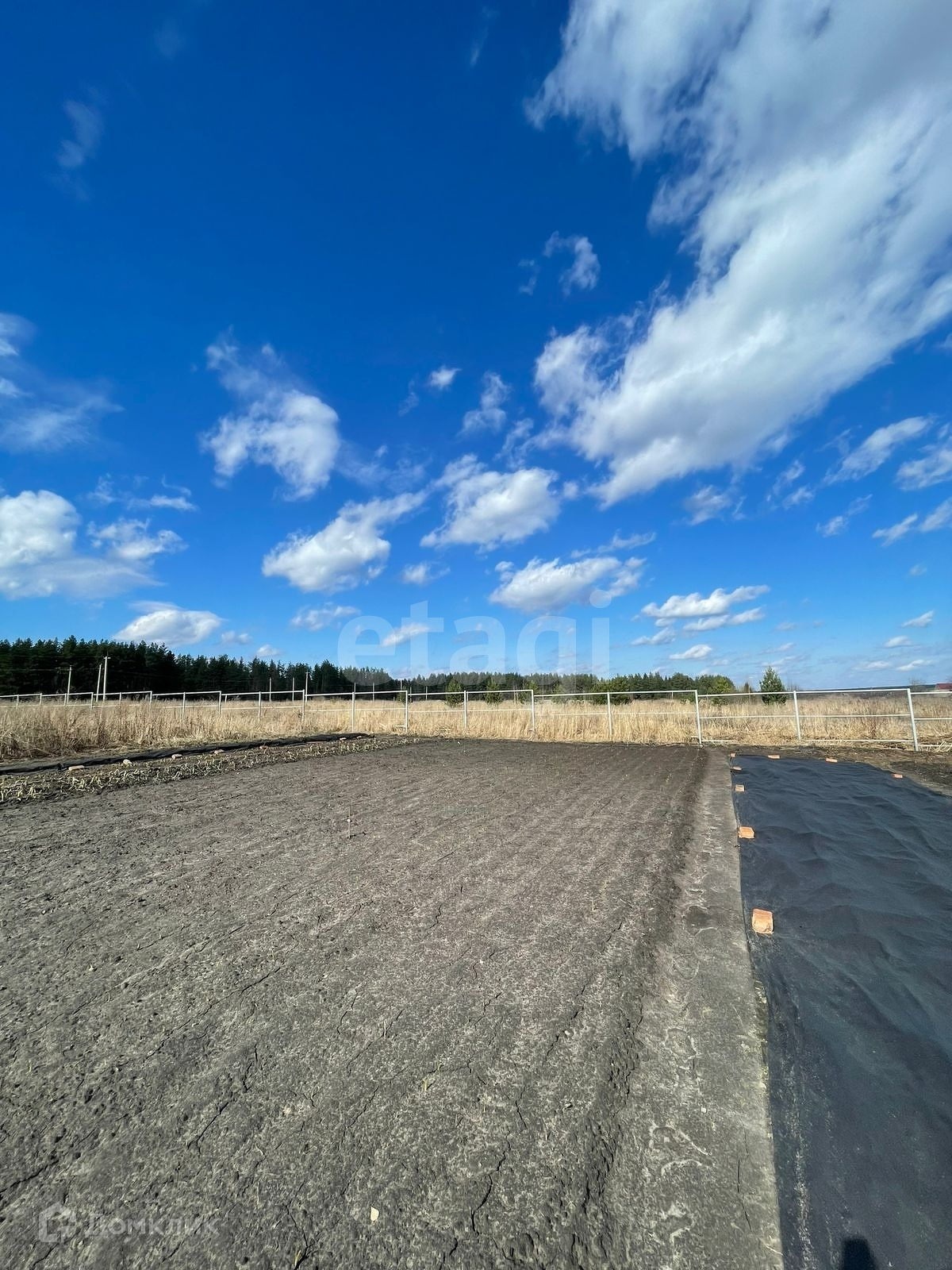 Участок огорожен по периметру забором высотой 2 метра общей длиной 430 метров из профнастила.