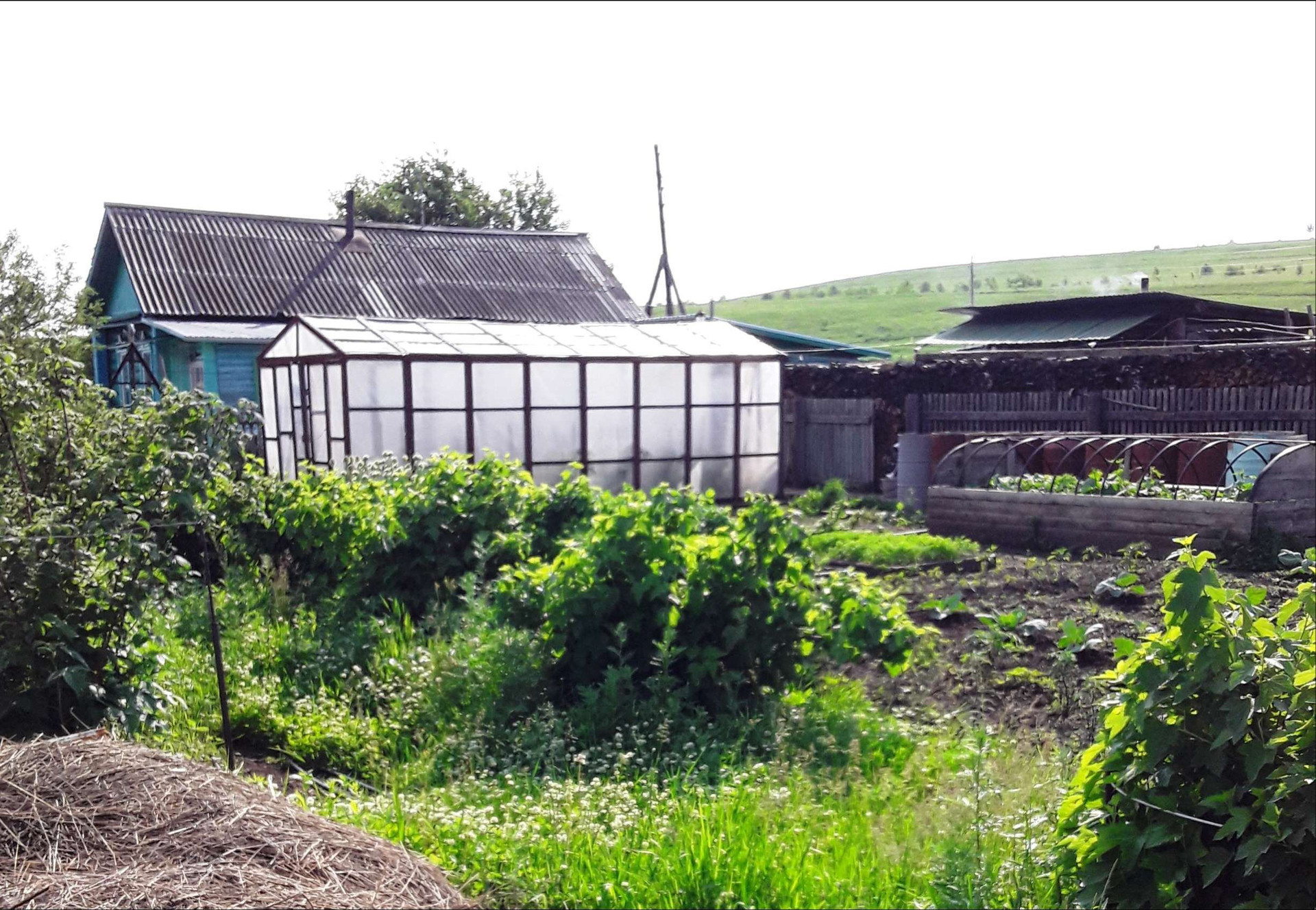 дом 62,7 кв м 2 комнаты и кухня , гараж 32 кв м теплый , веранда​ 6,5 кв м, баня 9 кв м, кладовка 13,5 кв м, курятник 10 кв. м, общая площадь участка 4800 кв.м. На участке кустарники малины, смородины, жимолость и вишня. Есть летний водопровод, теплица под армированой пленкой 40 кв.м. со съёмными на зиму рамами.
