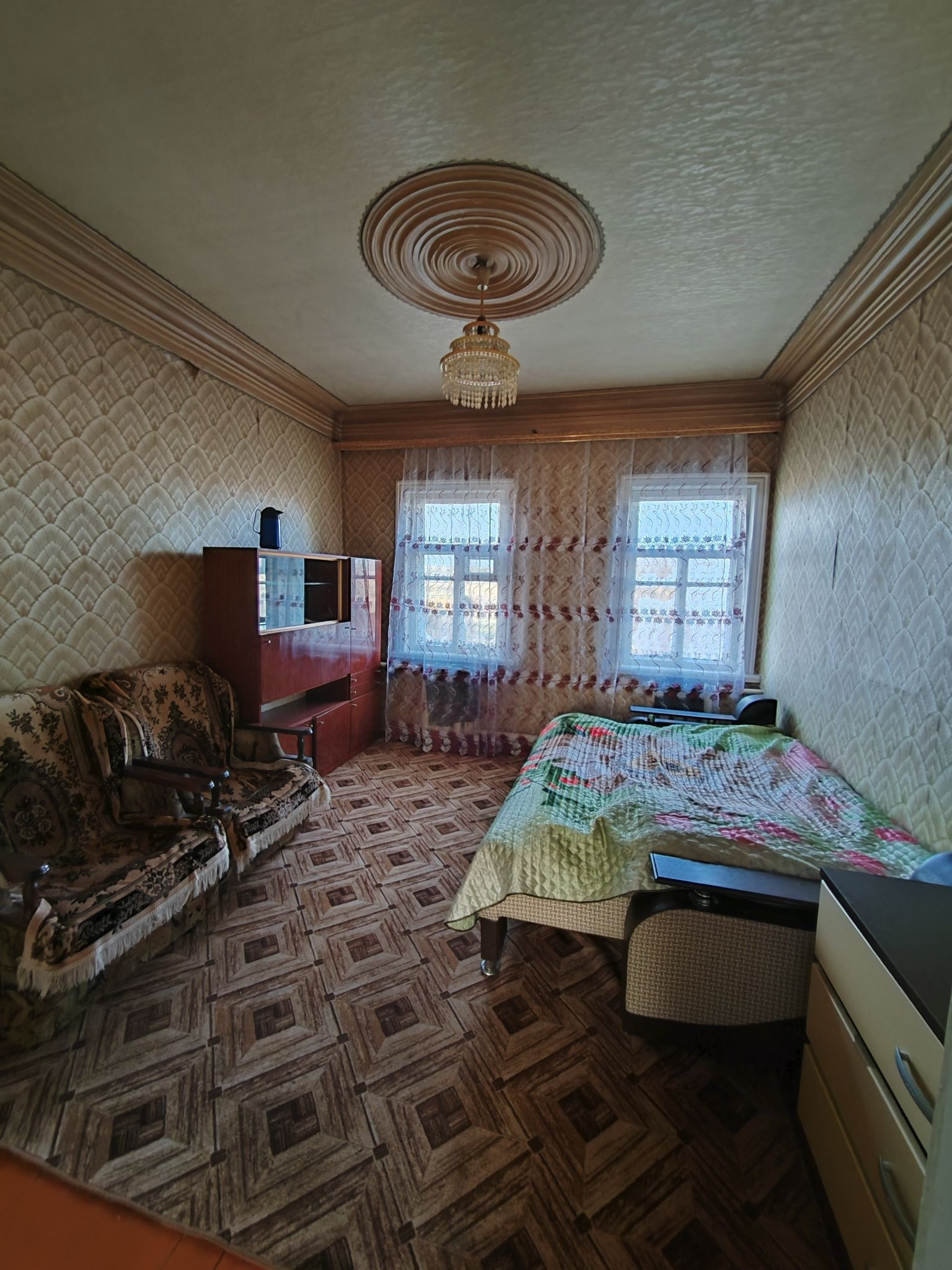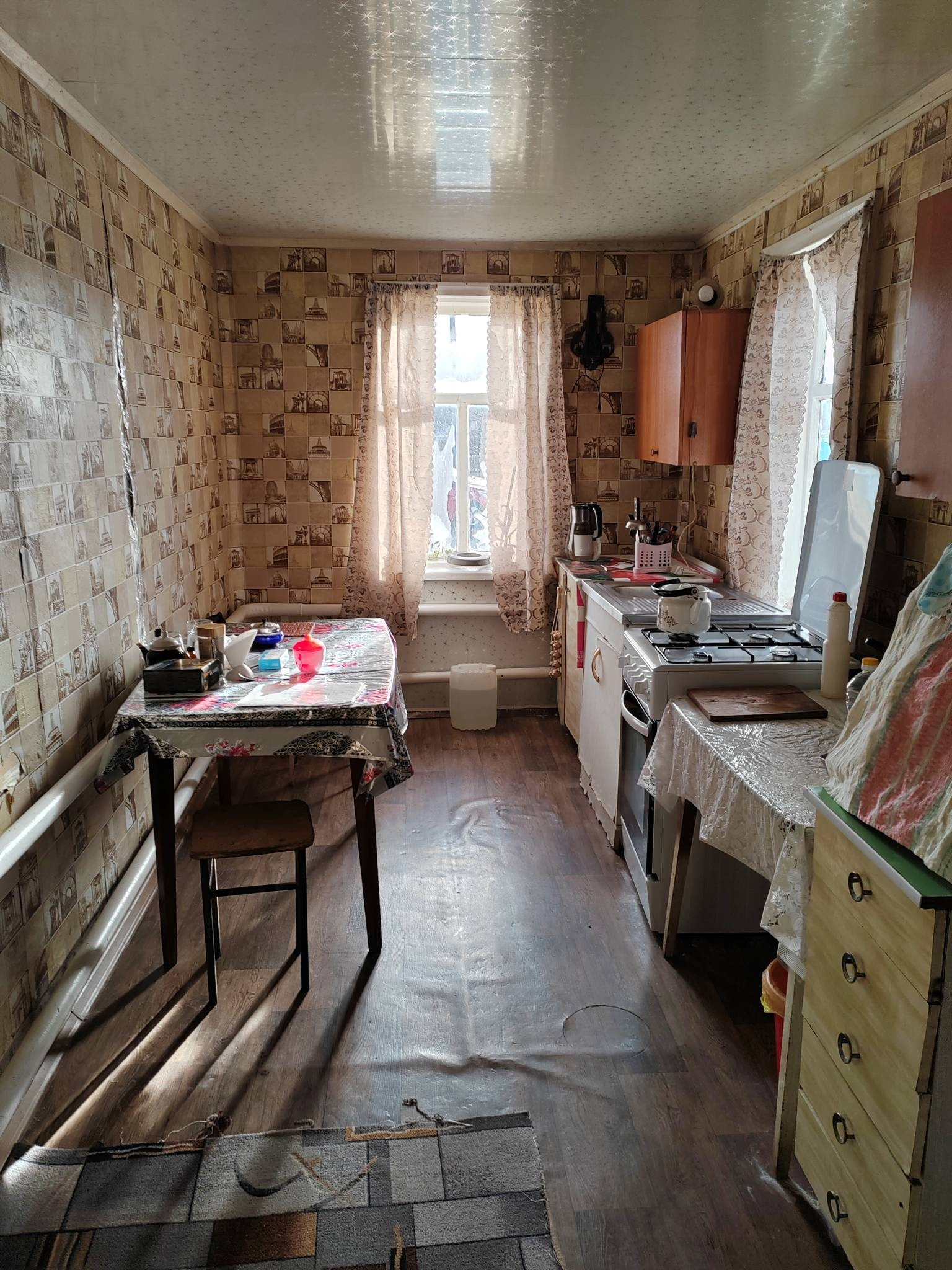 Ворота металлические 3 ка. Очень большая и удобная кухня. Везде окна деревянные.