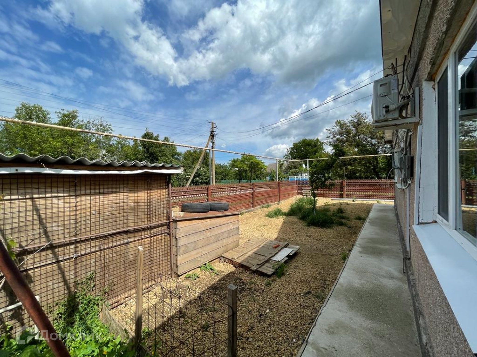 Вокруг дома залита новая отмостка, сделан вольер для крупной собаки, утепленная будка, несколько выводов воды во дворе - удобство для полива и