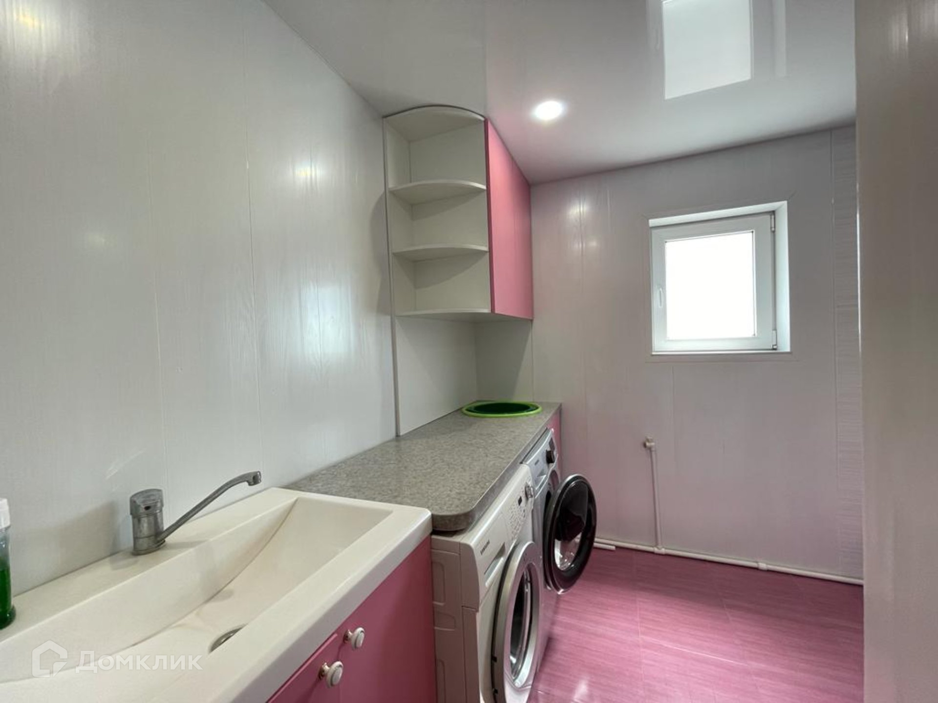 стиральная и сушильные машины, также есть место для белья и навесные шкафчики, сделана проводка и крепления под три кондиционера.