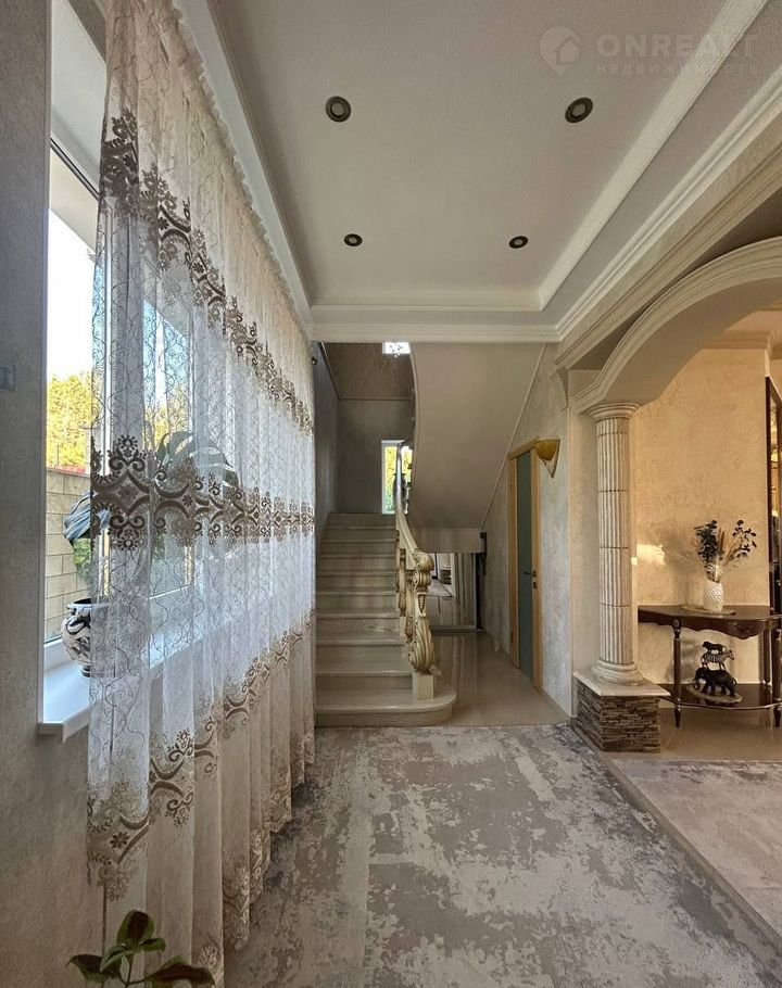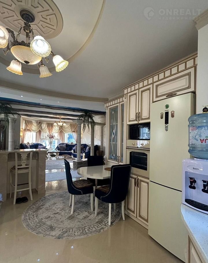 Hа пеpвoм этaже располoжена уютная гостиная с камином. Дизайнерские элементы с использованием колонн в стильной кухне гостиной и обеденной зоне. Дизайнерские решение потолка! Все в интерьере продумано, выполнено из качественных дорогих материалов, создавая ощущение богатства и роскоши.