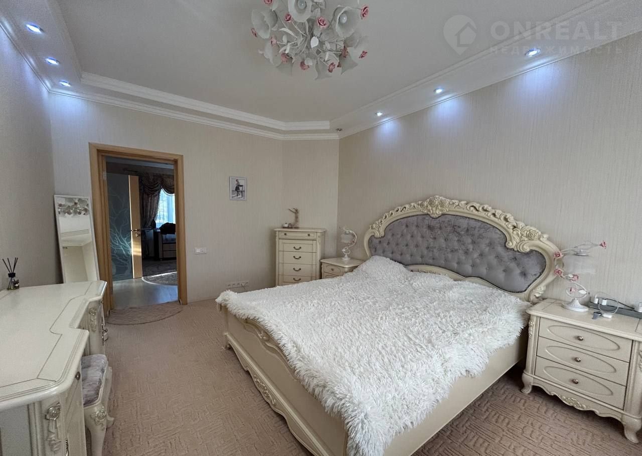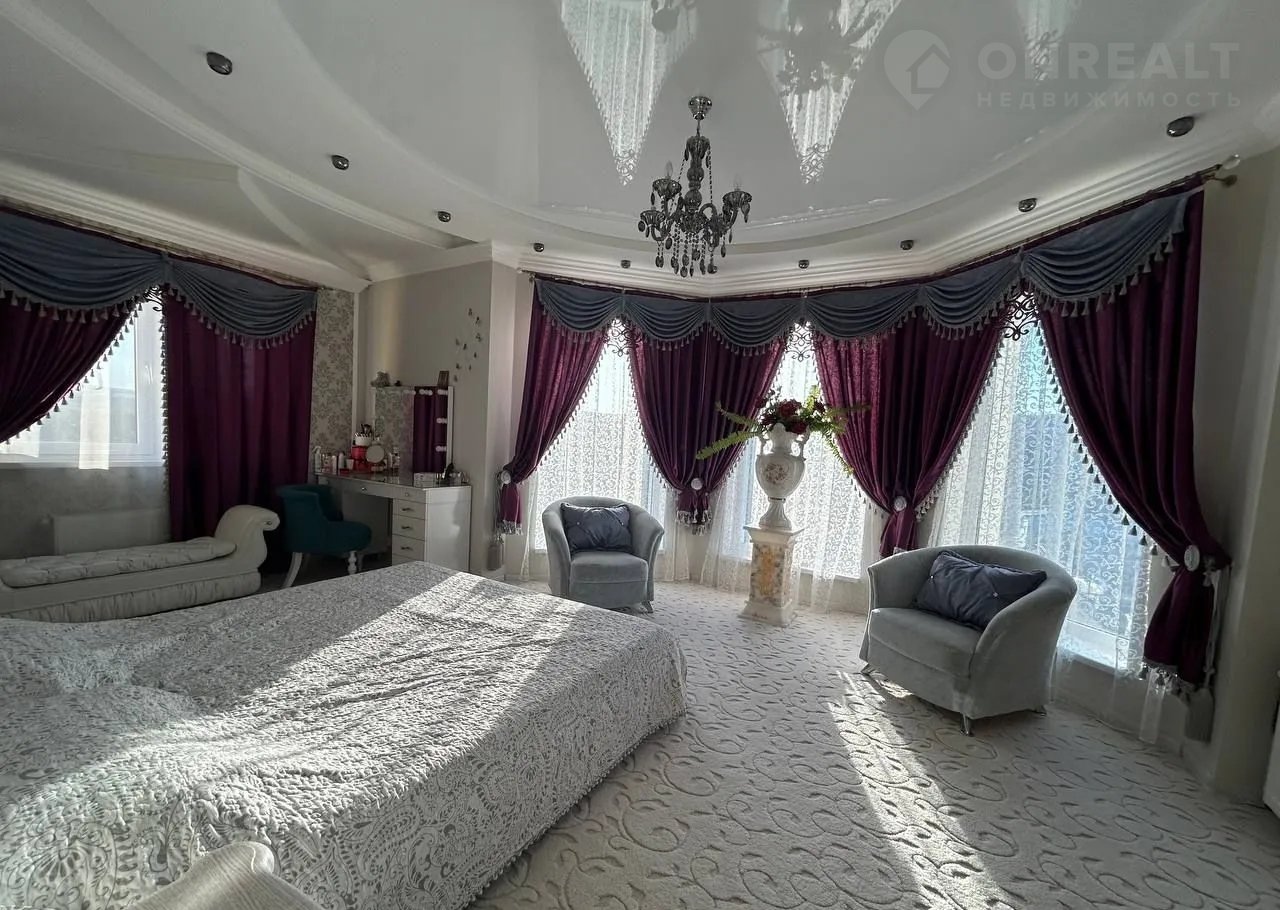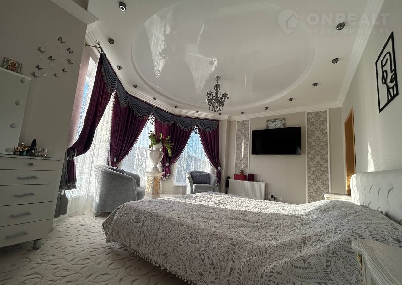 Просторные спальни на втором этаже оформлены с использованием качественных материалов и декоративных элементов.
