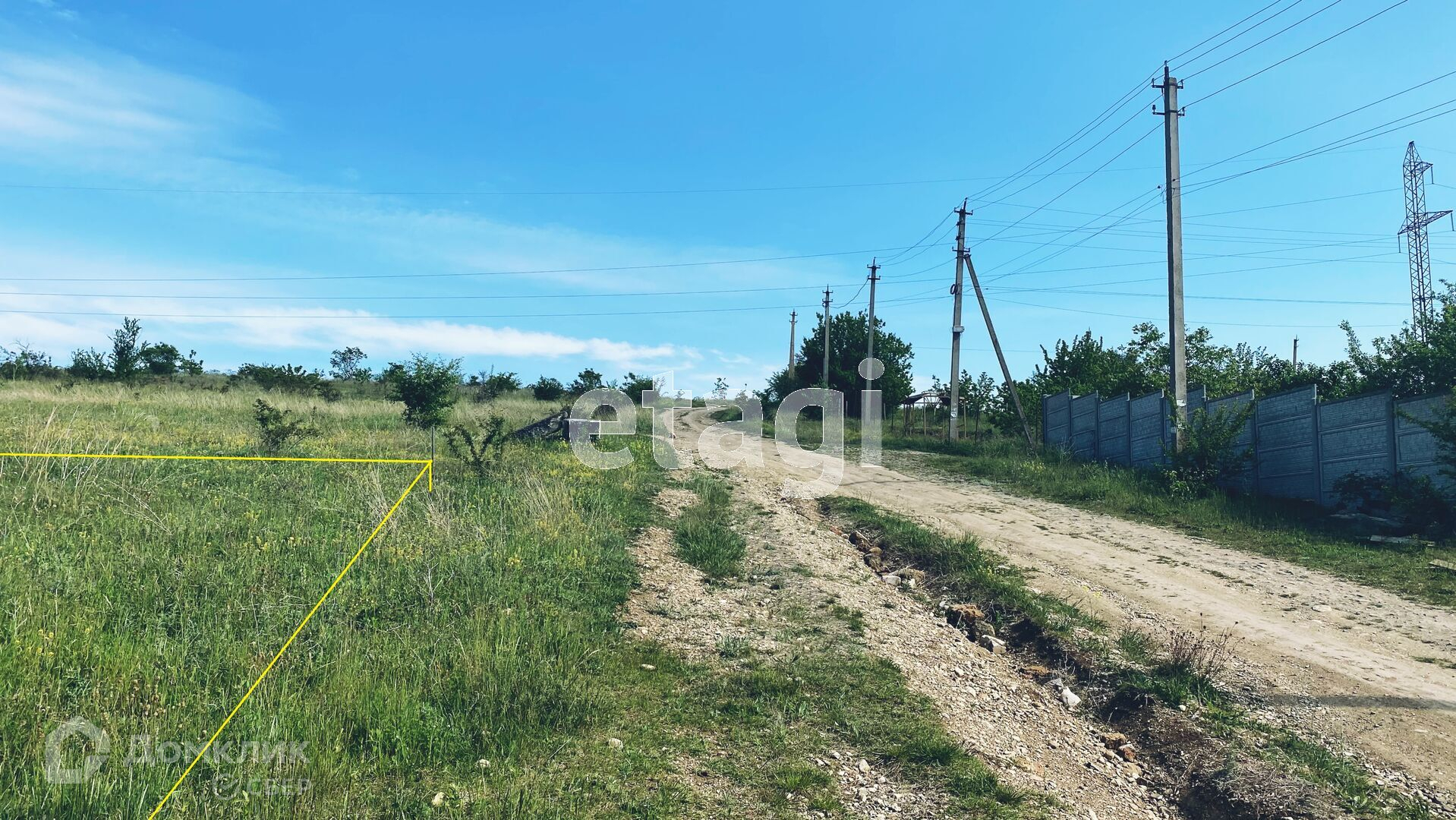 Район активно развивается, не далеко от города. Есть возможность подключить электричество, газа нет, вода бурить скважину, при желании участок можно поделить на два.