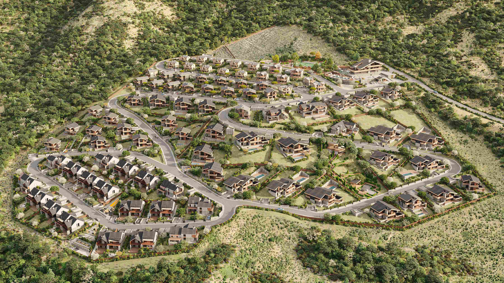 Поселок расположен в одном из самых экологически чистых уголков Алушты. Со всех сторон участок окружен горным массивом, многовековыми лесами, а неподалеку протекает горный приток реки Демерджи. Весь коттеджный поселок разделен на сектора. Каждый сектор имеет свою уникальную концепцию, ключевые преимущества и завораживающие виды на лесной заповедник, горы и морское побережье, где каждый сможет подобрать коттедж под свои предпочтения.
