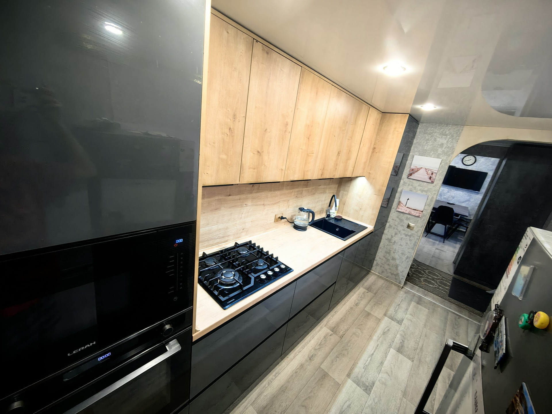 Кухня после капитального ремонта.Кухню устанавливали 8 месяцев назад,вся проводка новая.В доме везде натяжные потолки.5 месяцев назад,установлена гардеробная.Частично в доме поменяли  пол. Сан узел полностью в круг уложен плиткой, имеется душевая кабина,унитаз,раковина. Во дворе большой приусадебный участок, много насаждений (вишня,яблони,малина,клубника,жимолость,груша,смородина,крыжовник). Большой подвал в который можно спуститься в любое время года.Баня+ парилка (жаркая).Гараж,дровник,добротный сарай (после ремонта). Во дворе асфальт. Заходи и живи.Продажа от собственника. Дом находится в Луговом