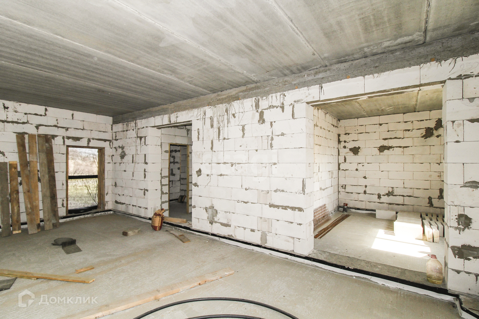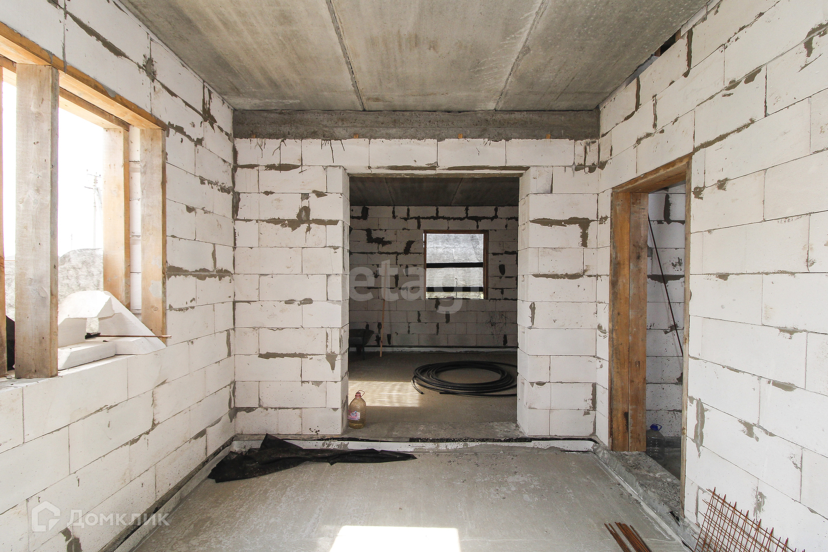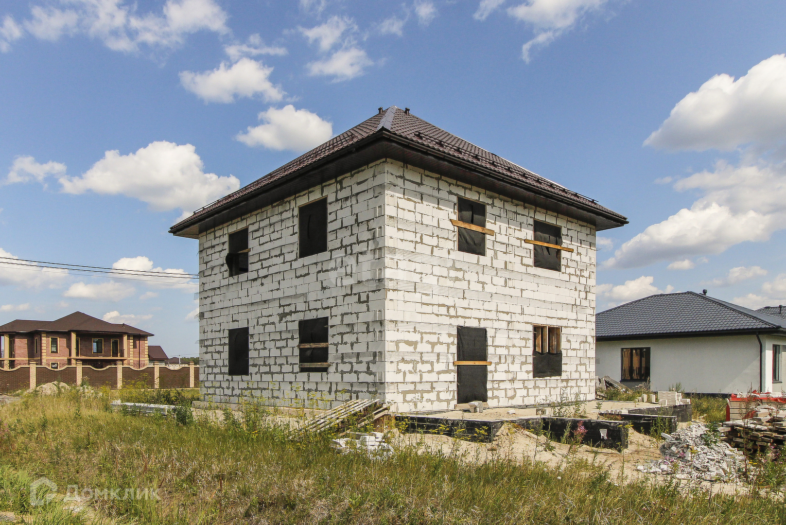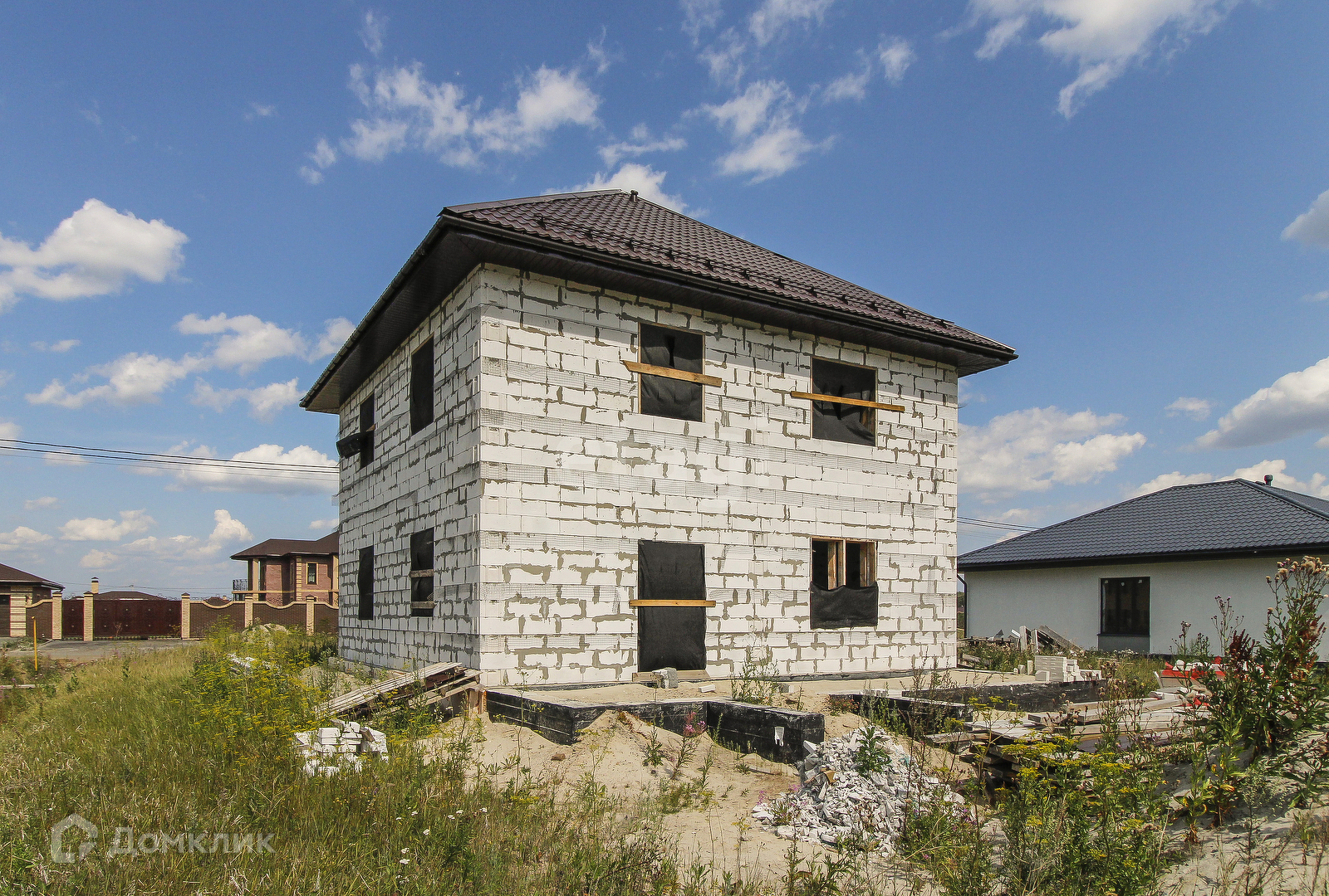 Предлагаю к продаже недостроенный дом из газоблока поревит 400 мм. Фундамент - заливные сваи 2,5 метра, 33 штуки. Строительство осуществлялось по проекту с постоянным личным контролем процесса. Дом построен 2 года назад, можно смело заканчивать строительство и заезжать. Качество говорит само за себя - в доме ни одной трещины. По проекту стены утеплять не нужно, облицовка - облицовочный кирпич. Все сливные трубы в наличии. Перекрытия второго этажа и чердака выполнены из плит перекрытия, на первом этаже залит черновой пол, подготовлен к выполнению тёплого пола. Материал для всех перегородок - в наличии. На первом этаже предусмотрены гостиная (24,33 кв.м), кухня (15,19 кв.м), кабинет (10,59 кв.м), холл (12 кв.м), котельная, санузел, тамбур, кладовая. На втором этаже 3 комнаты и санузел с прачечной. Также предусмотрены веранда и терраса. Электричество, вода - заведены в дом, оборудована скважина глубиной 52 метра. Площадь дома - 160 кв.м (2 этажа) + порядка 80 кв.м на мансарде. На участке газовая труба. Интернет оптика. Сделана канализация, септика еще нет. Участок угловой, соседи только с двух сторон. Общая площадь участка 10 соток (в собственности, межевание есть). Придомовая территория около 3 соток. Есть разрешение на строительство, есть проект дома. Звоните!