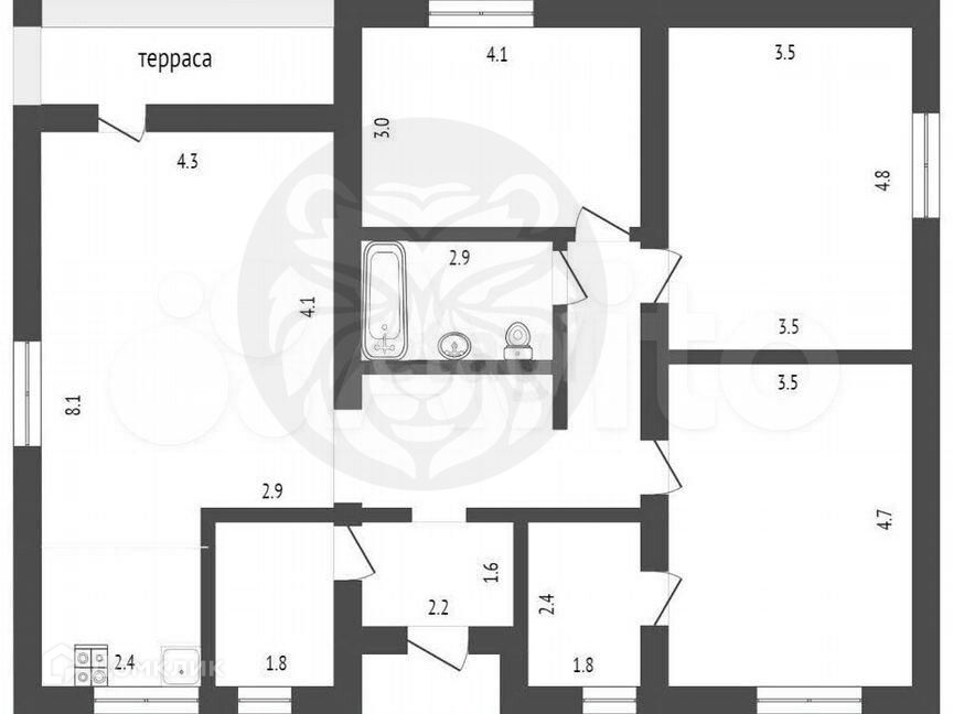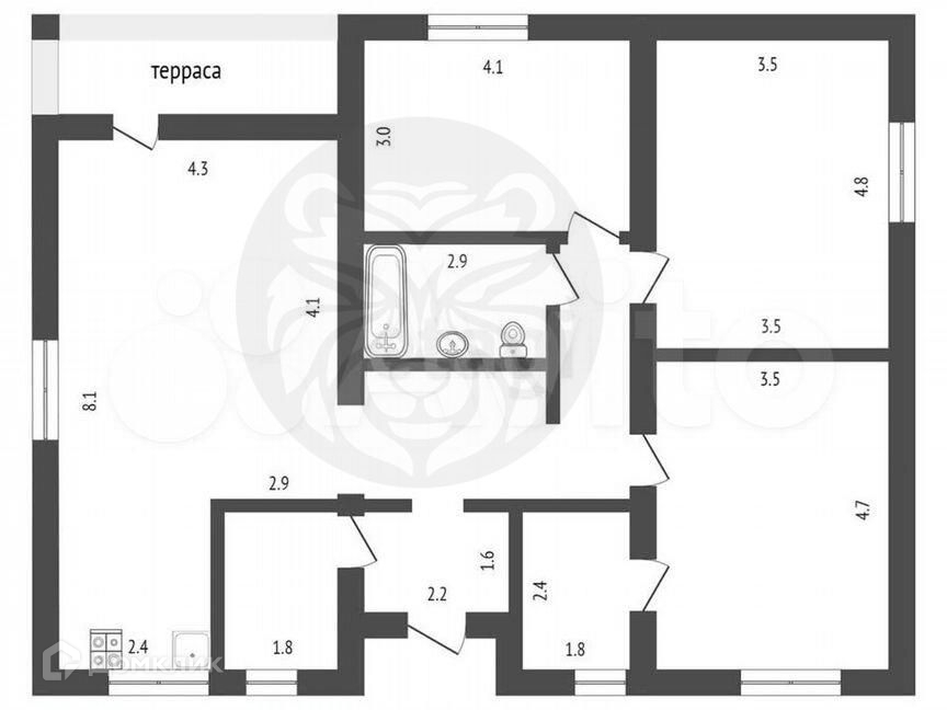 Дом будет передан покупателю с улучшенной черновой отделкой. Это включает в себя оштукатуренные стены, бетонную стяжку пола, электропроводку и водопровод, энергосберегающие пластиковые окна и качественную входную дверь.