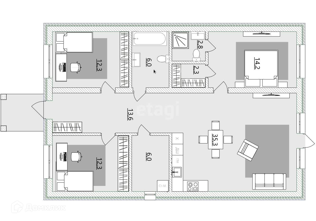 Общая площадь 125 м2