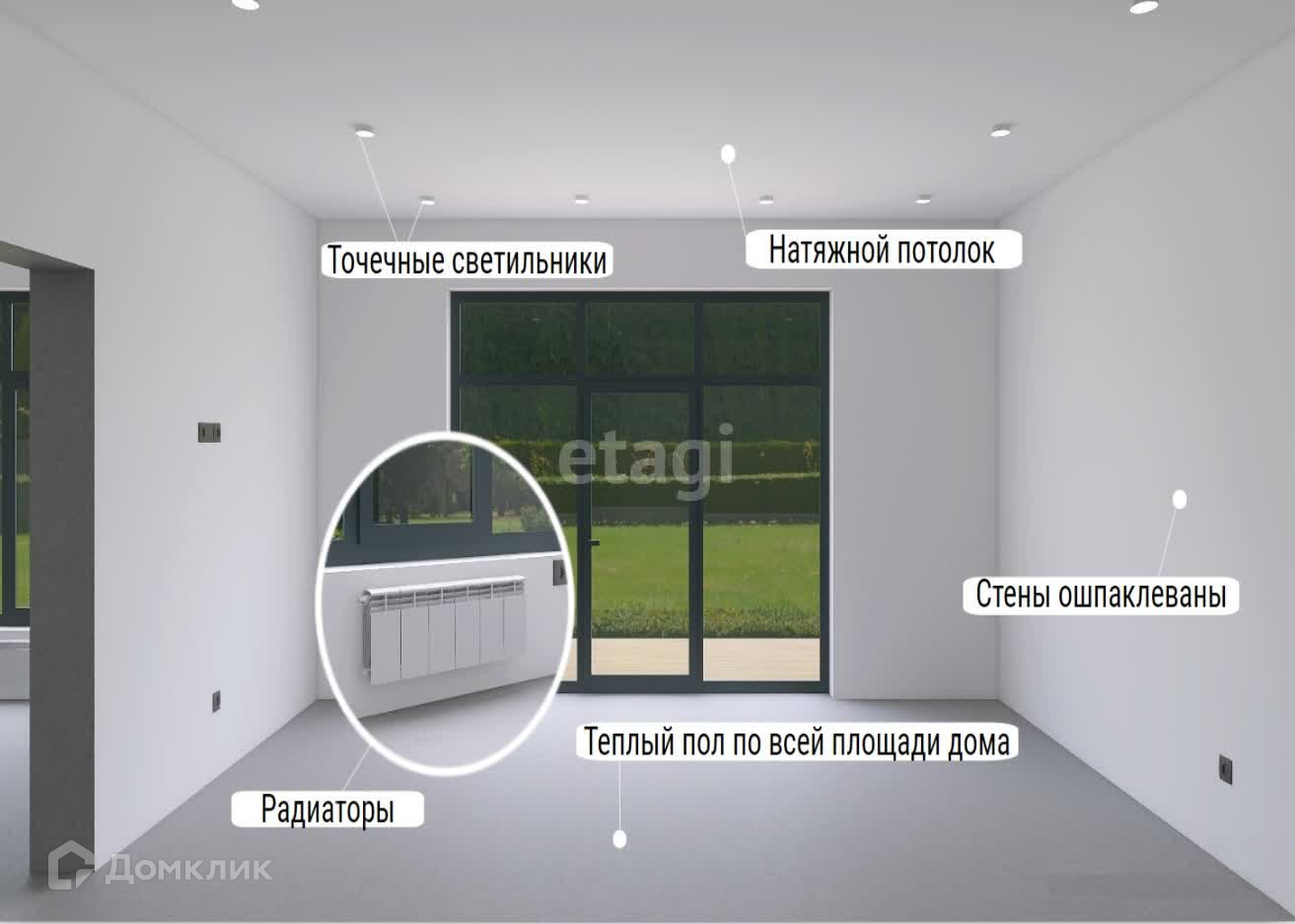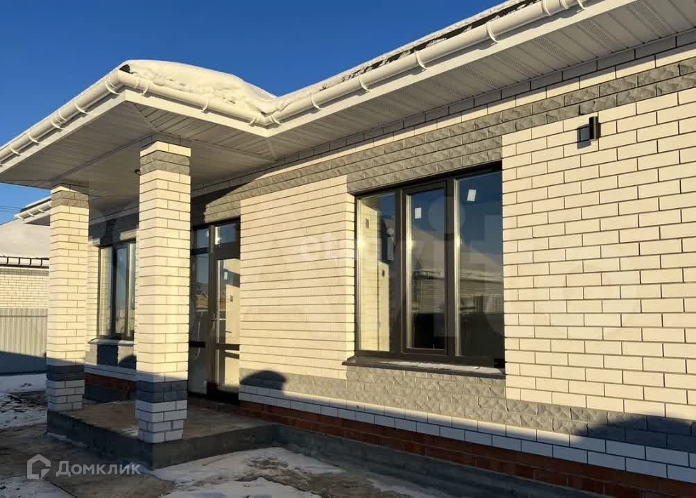 Тип кровельного покрытия – гибкая черепица Облицовка стен — кирпич. Солнечные фасады нового дома привлекают внимание скромной изящностью, гармоничным сочетанием материалов, цветовой гаммы и витражным остеклением. Вход в дом начинается с небольшого крыльца, ведущего в тамбур. Здесь же размещается профессионально оборудованная котельная, обеспечивающая загородный дом теплом и уютом. Просторный холл открывает двери в одну из спален, санузел и ванную комнату. Далее коридор плавно переходит в хорошо освещенную гостиную, объединенную с кухней-столовой в одно помещение. Завершают внутреннее пространство дома две уютные спальни. Вода скважина,канализация септик на 10 куб., отопление электрический котел. Дом представлен в улучшенной черновой отделке. Отлично проработанная внутренняя планировка, симпатичные фасадные решения и ценовая доступность при реализации проекта — отличительные черты этого загородного дома.
