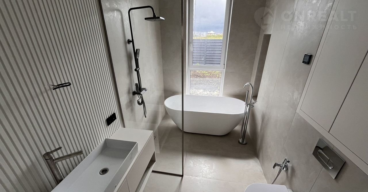 Дизaйнеpcкий дом 166 м² в премиум-поcёлкe (Лугoвое) — для семьи, которая выбирает лучшее Готов к заселению. Умный дом, мастер-спальня, панорамные окна, статусная локация, природа и город рядом.