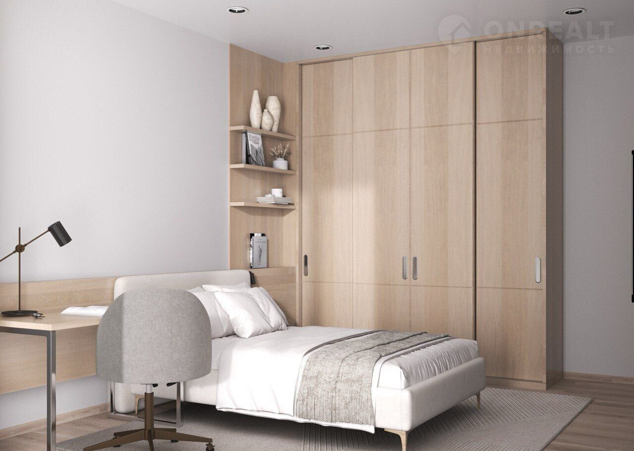 Мастер-спальня представляет собой приватную зону отдыха, где можно полностью расслабиться и восстановить силы. Грамотное расположение всех помещений обеспечивает удобство передвижения по дому, а продуманные проходы и коммуникации делают повседневную жизнь максимально комфортной.