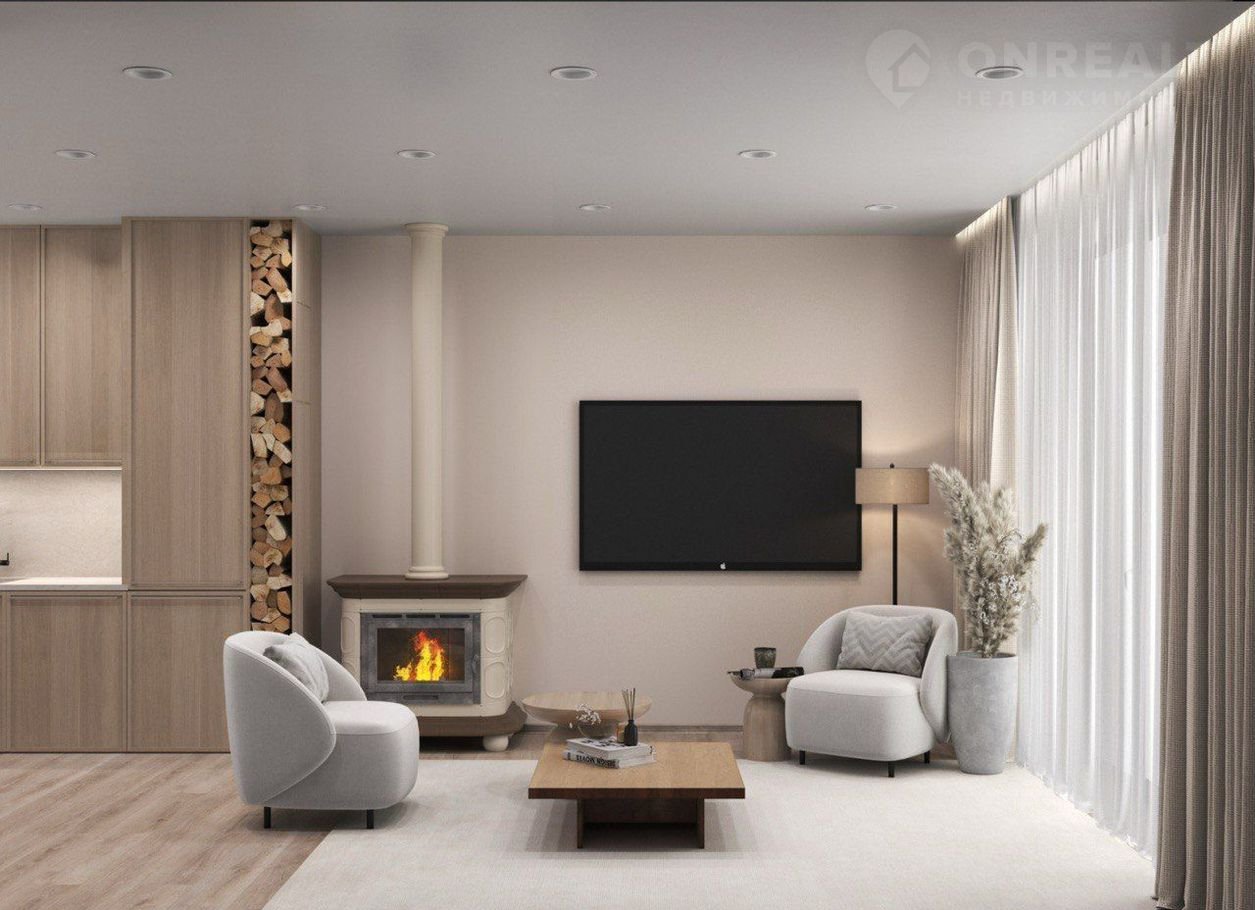Центральным элементом дома служит просторная кухня-гостиная, которая становится настоящим сердцем жилища. Это многофункциональное пространство прекрасно подходит как для повседневных семейных трапез, так и для приема гостей.