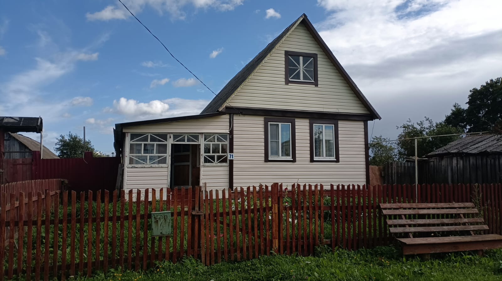 Дом построен 1988 году, материал - дерево (обшит сайдингом), крыша - шифер.