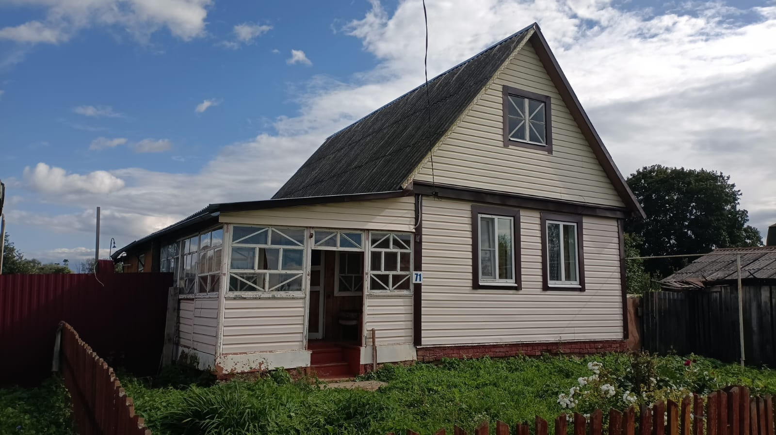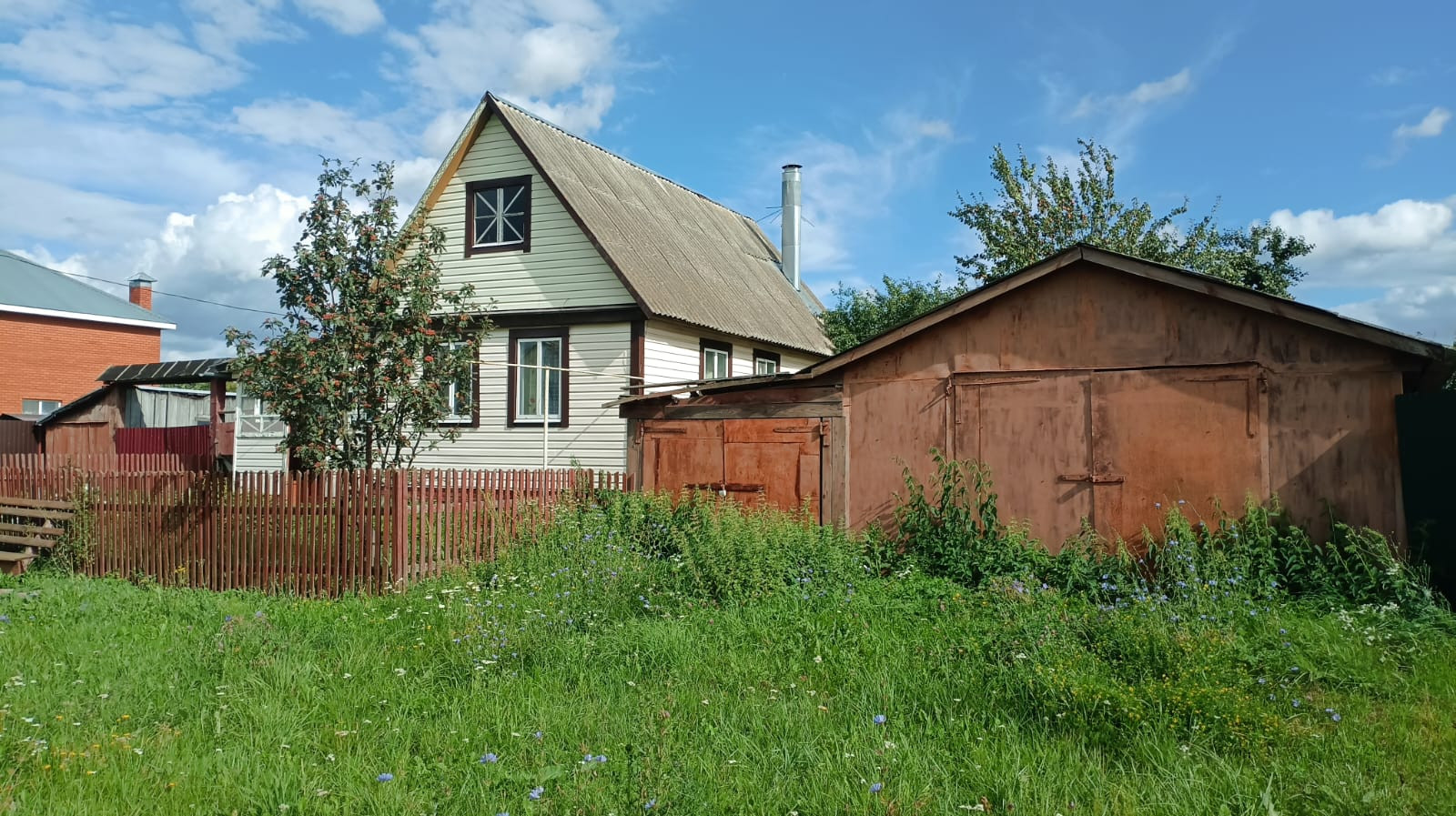 Участок 36,5 соток, 30 метров по фасаду, длина 109 метров. На участке есть баня, гараж, хозяйственные постройки.