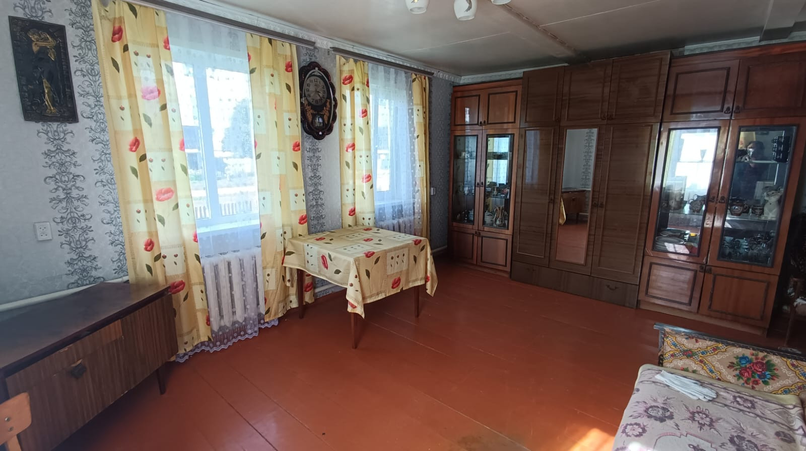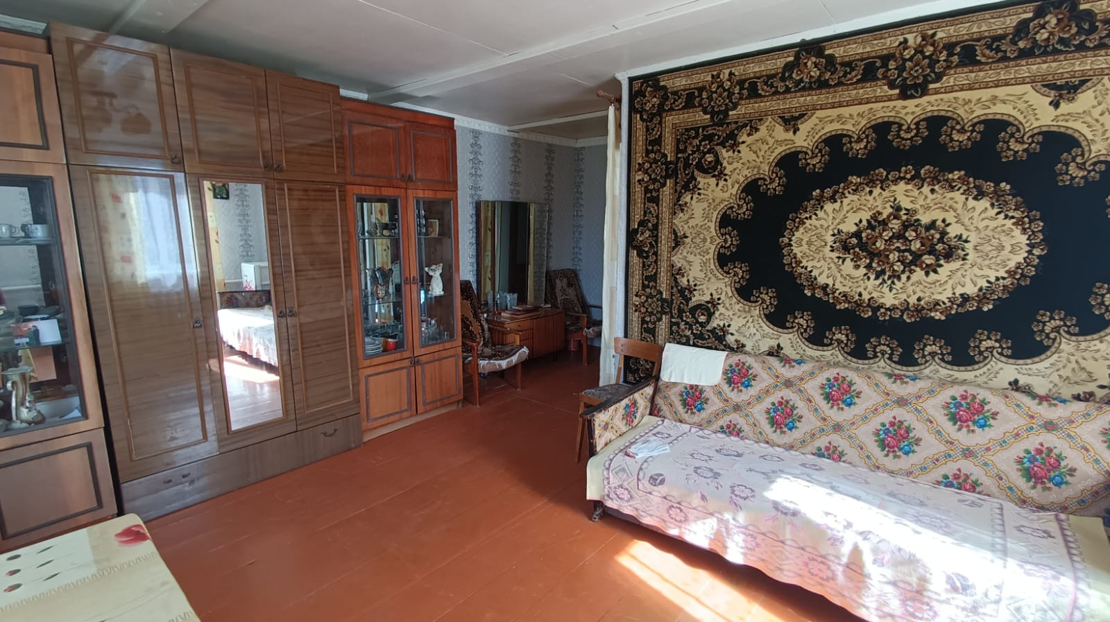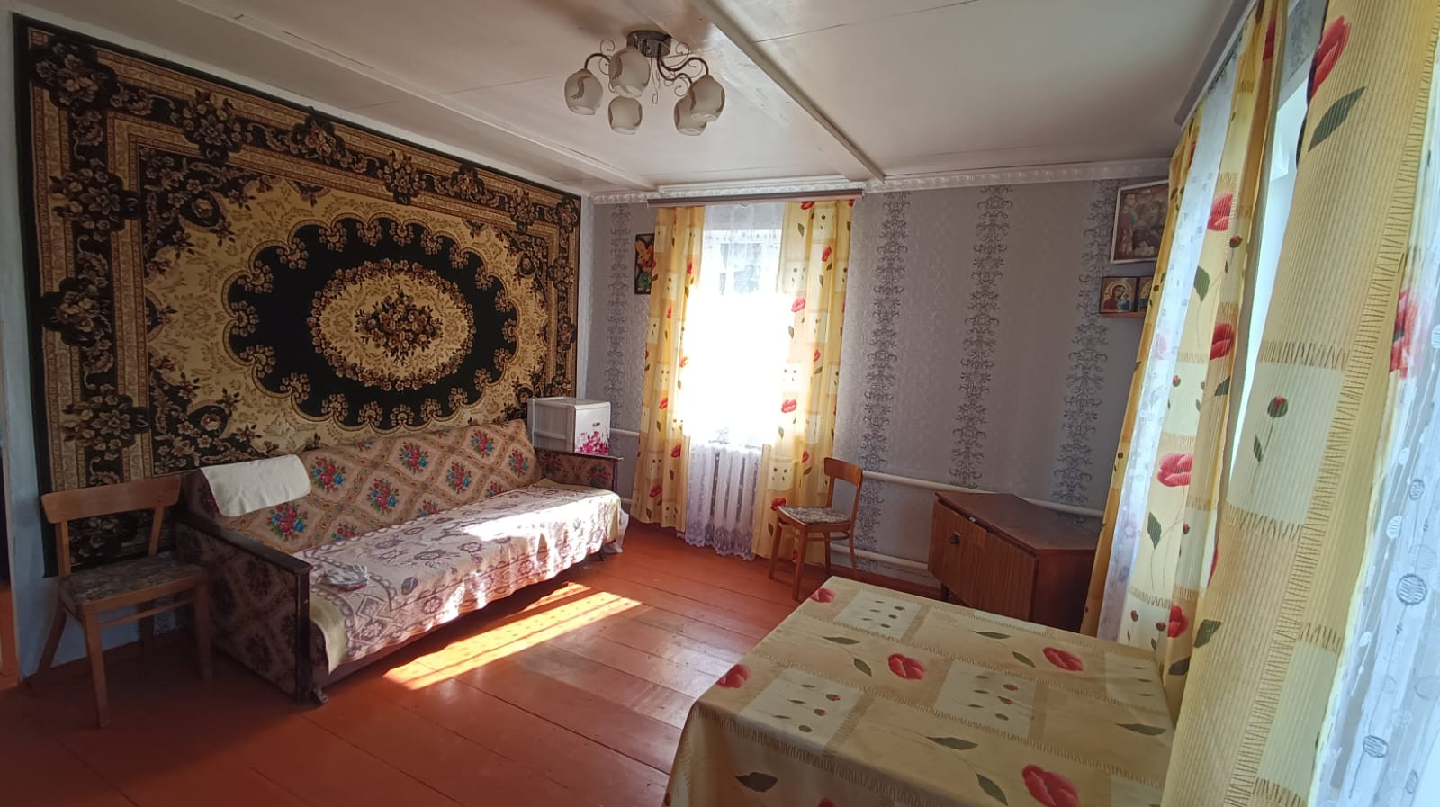 Площадь дома 42 кв.м. В доме две комнаты, санузел (совмещенный), терраса, летняя кухня, два подпола и погреб. Ремонт косметический (можно заехать и жить).