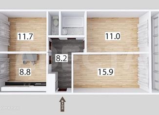 Продажа трехкомнатной квартиры, 64.3 м2, Зелёная улица, 4