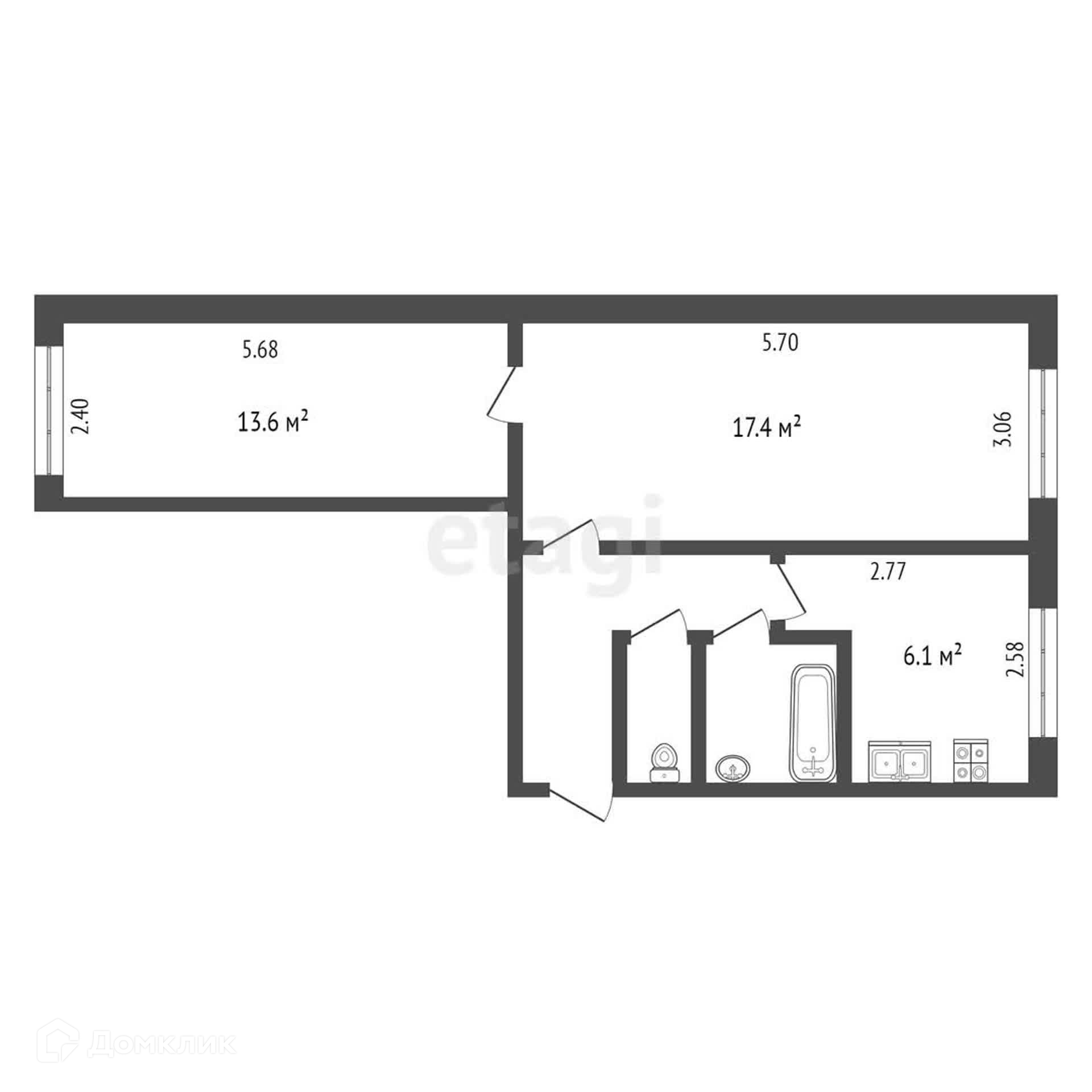 Площадь кухни 6.1 м2