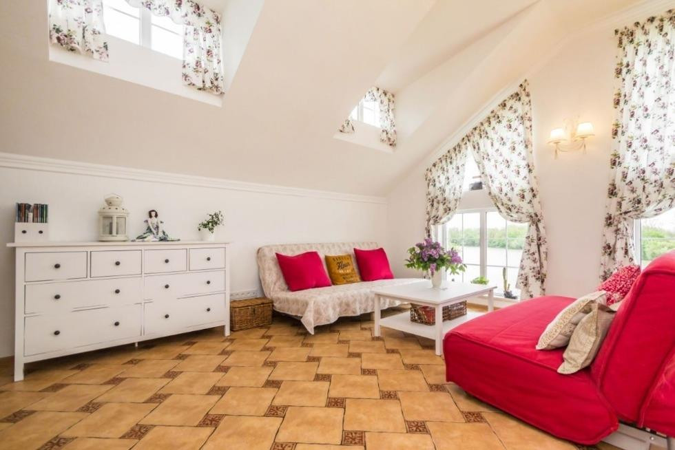 высота потолка в пике 3,5 м. Много воздуха и света.