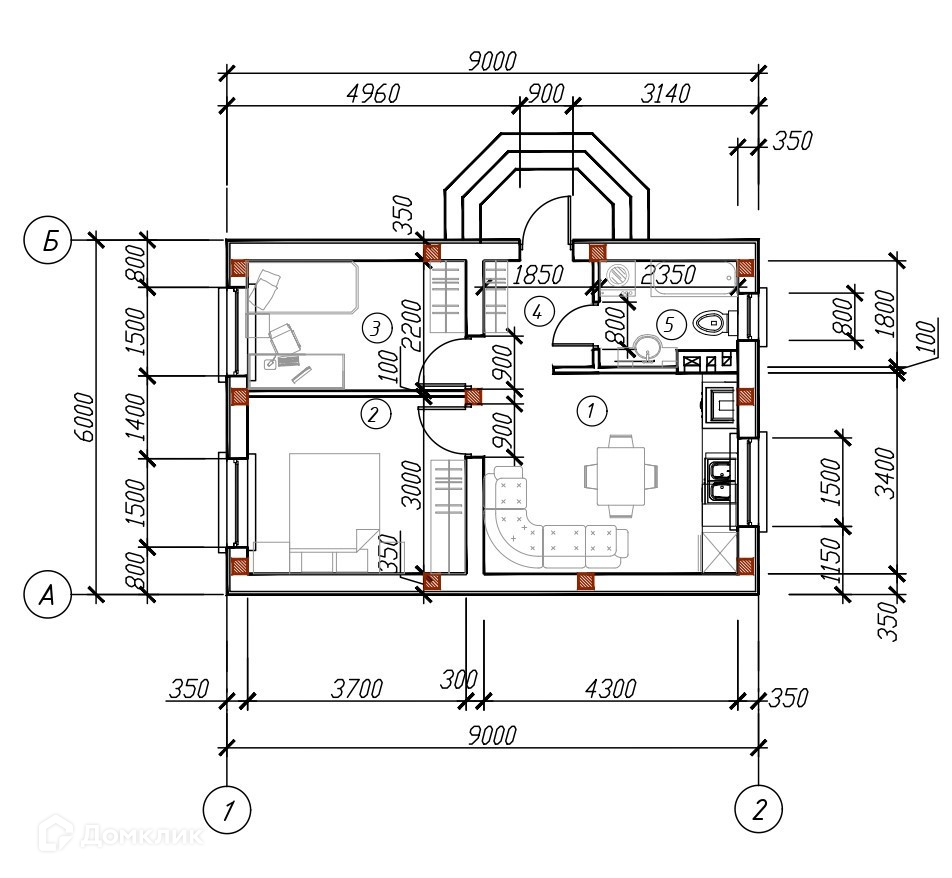 Общая площадь 43 м2