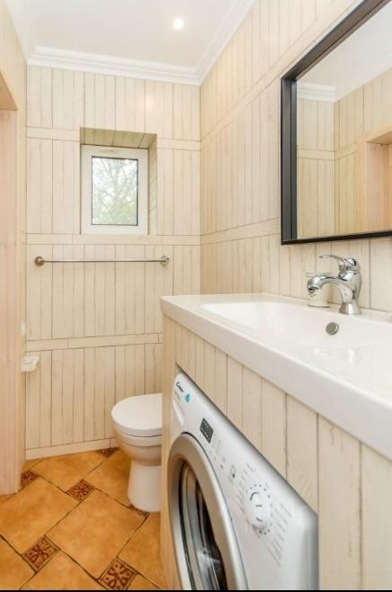 в каждом санузле: ванная, туалет, стиральная машинка, мойки со шкафчиками и зеркалами