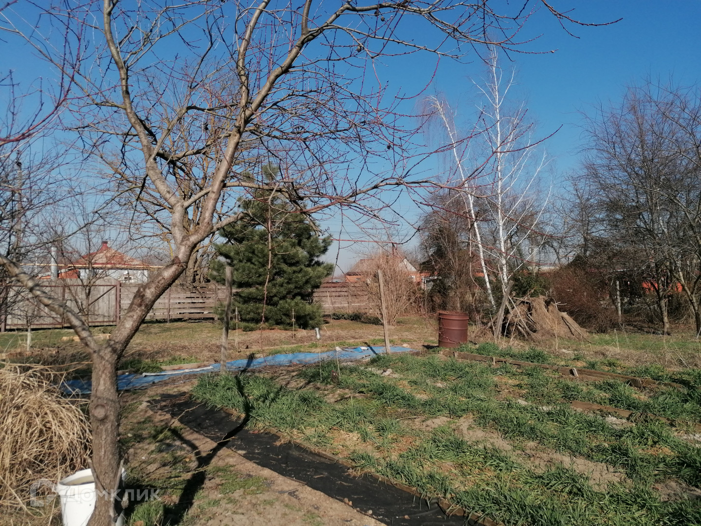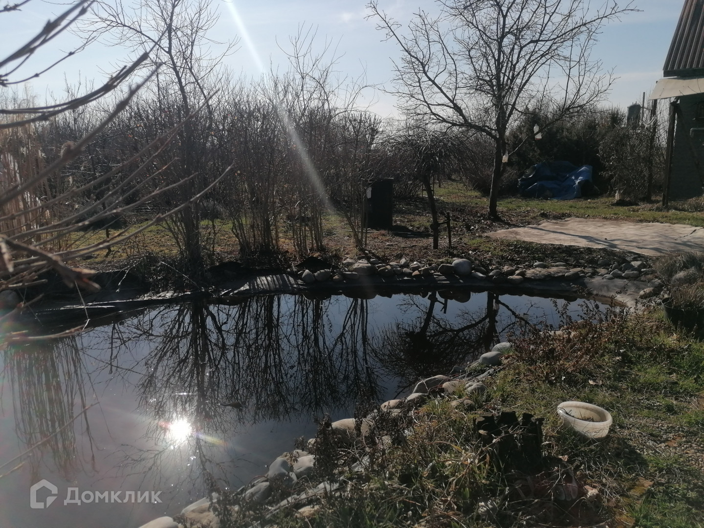 Участок прямоугольной формы, фасадные части 47 м на 52 м, периметр огорожен забором. На участке имеется блочное строение 40 кв. м. для временного проживания, заведено электричество, центральный водопровод, сделана канализация, присутствует возможность заведения газа (проходит по улице). Изюминкой участка является плодоносящий сад (черешня, нектарин, персик, вишня, кизил) и прудик с рыбками.