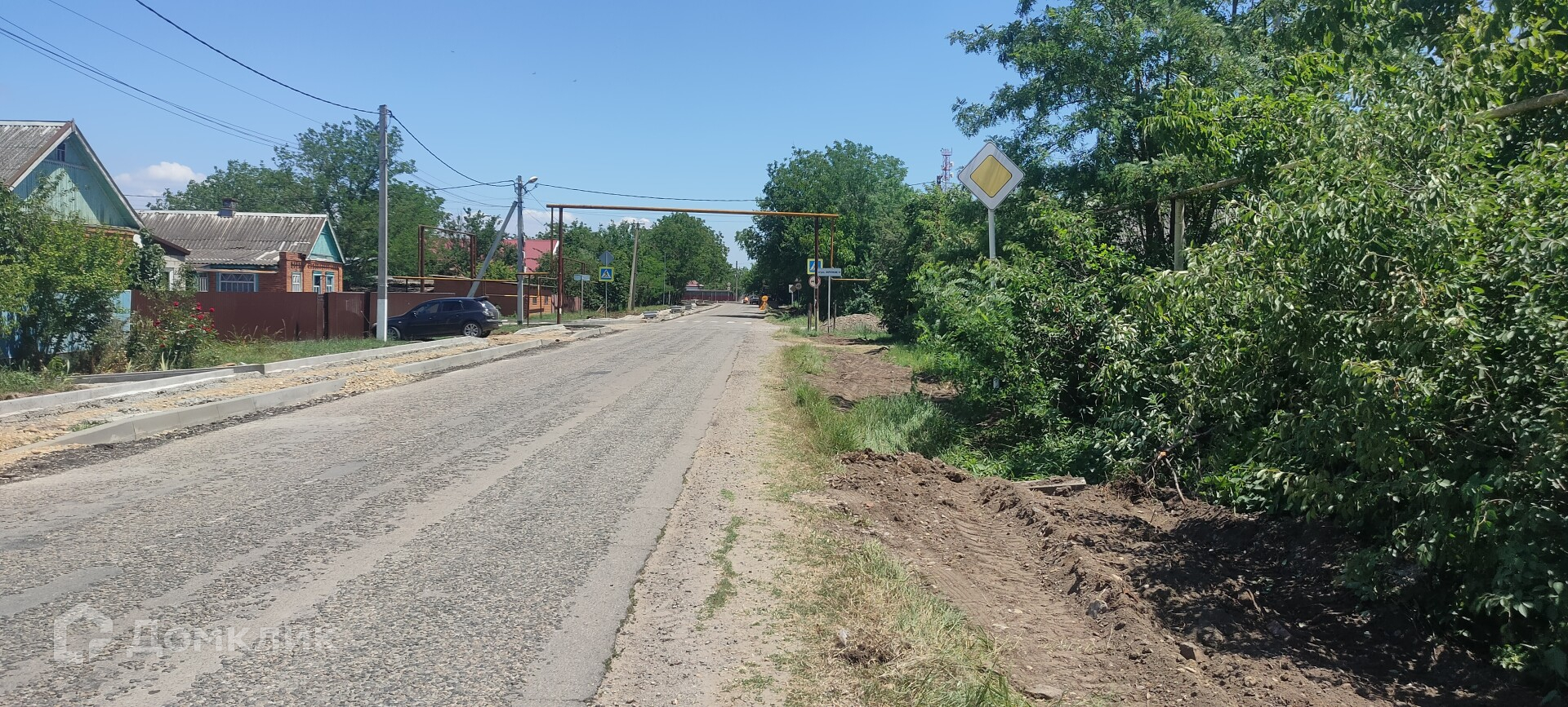Земельный участок ровный, прямоугольной формы, не подтопляемый, широкий фасад 30 метров, свет, газ, вода, проходит по меже участка.