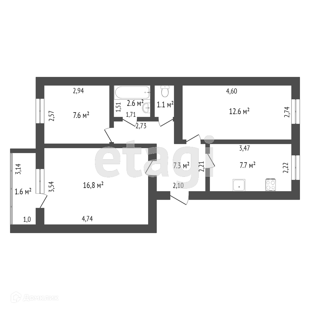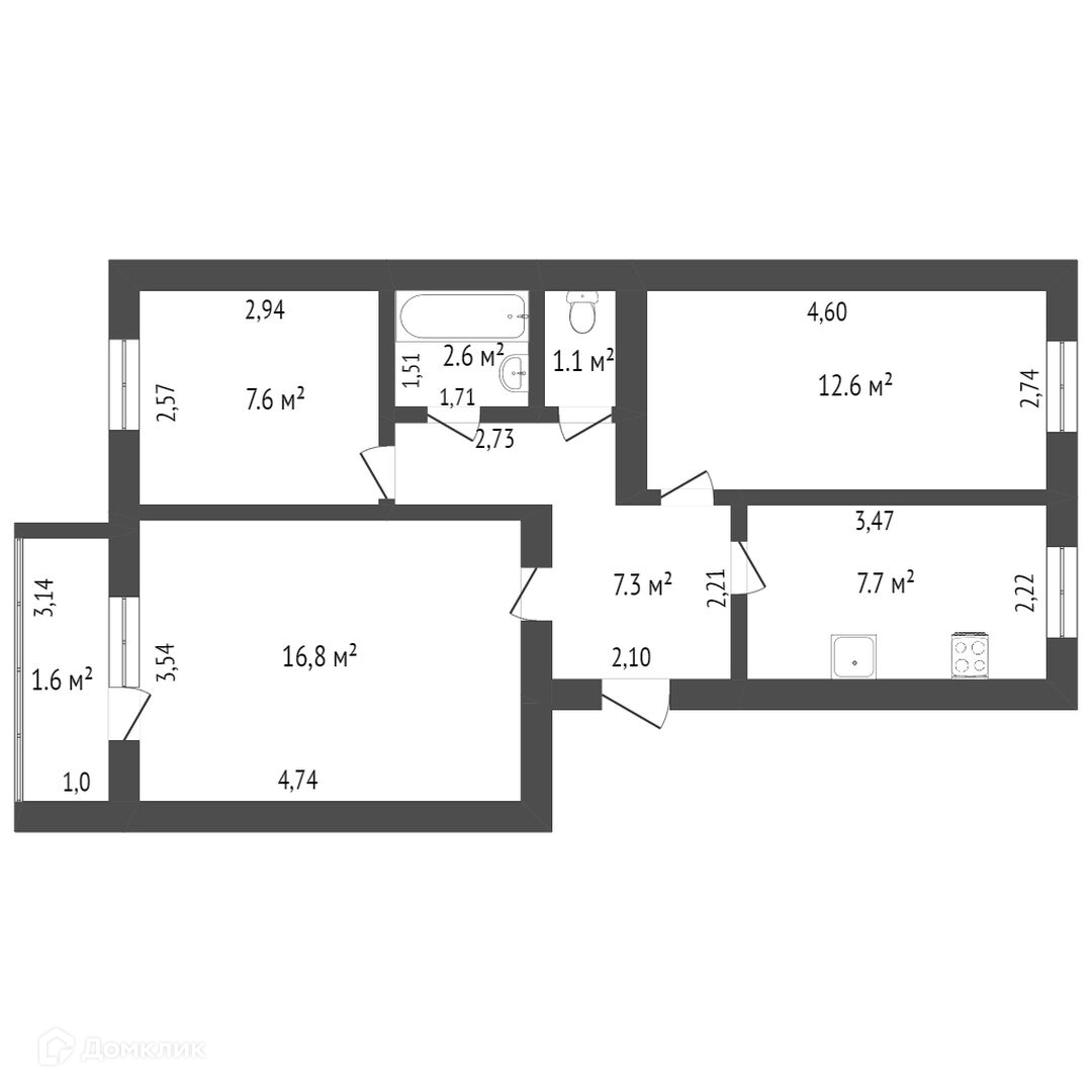 Общая площадь 55.7 м2
