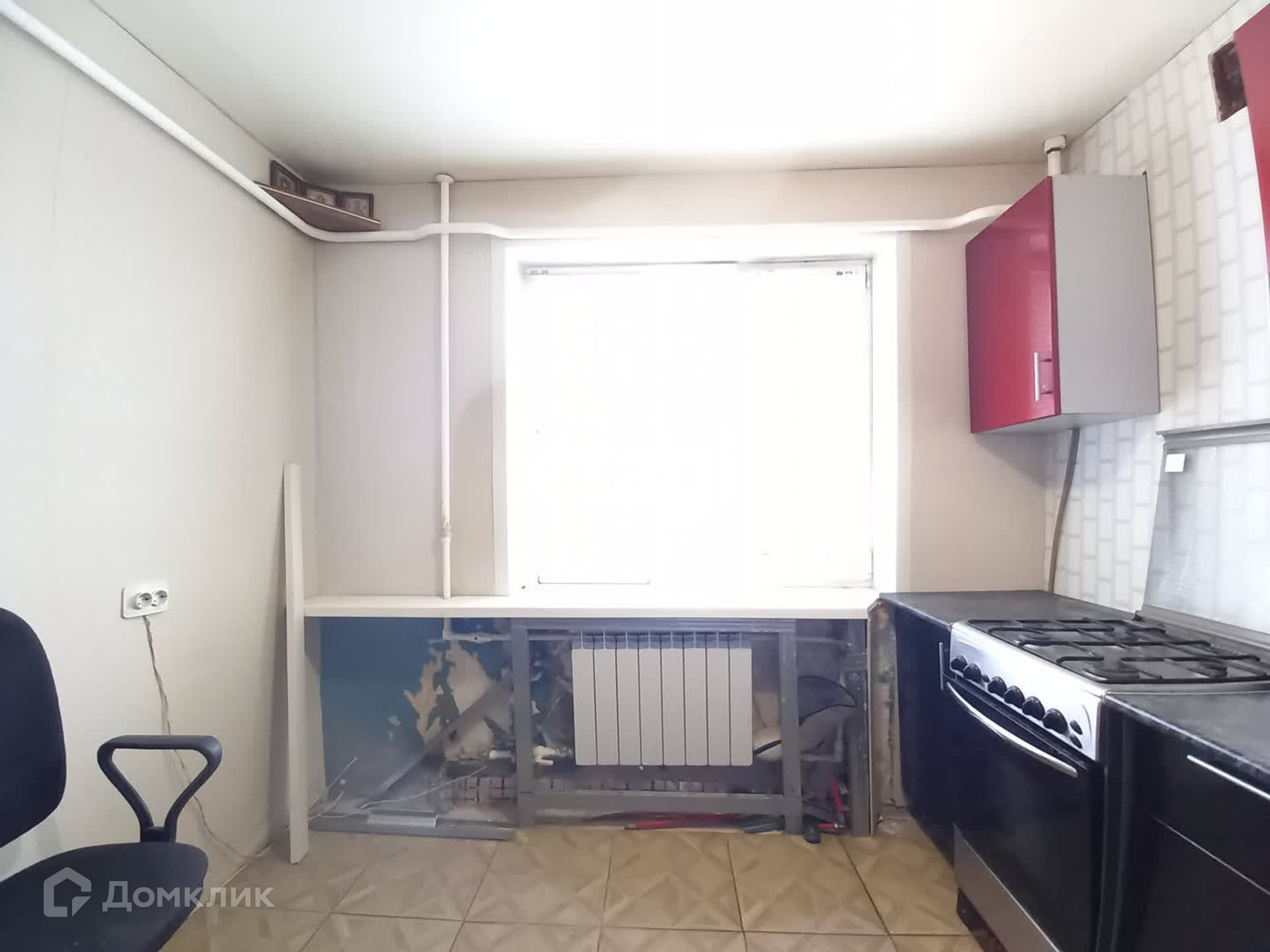 В квартире частично косметический ремонт: установлены пластиковые окна, в комнате на полу линолеум, обои под замену, на кухне керамическая плитка, батарея биметаллическая. В прихожей на полу плитка, на кухне и в прихожей натяжные потолки. За кухонным окном на улице установлена сушилка для белья.