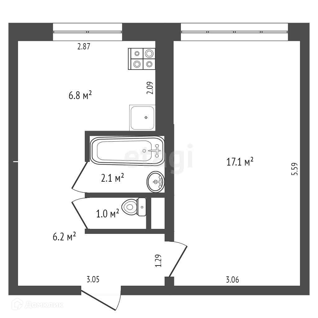 Общая площадь 33.2 м2