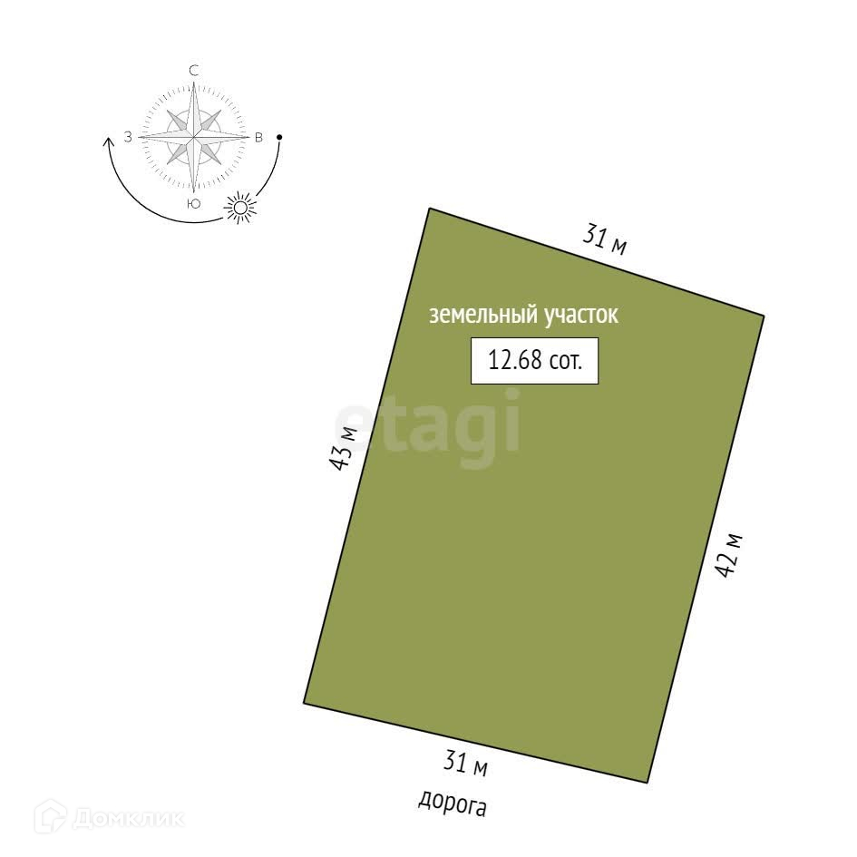 Площадь участка 12.68 сот.